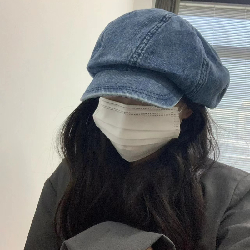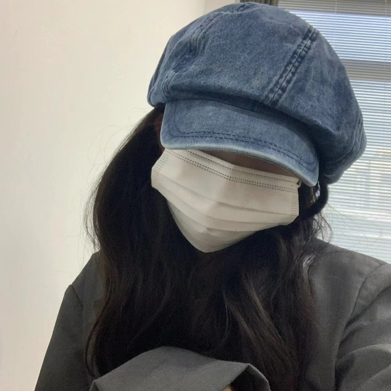 大头围牛仔ins贝雷帽女生显脸小韩版百搭春秋帽子复古港风甜酷风