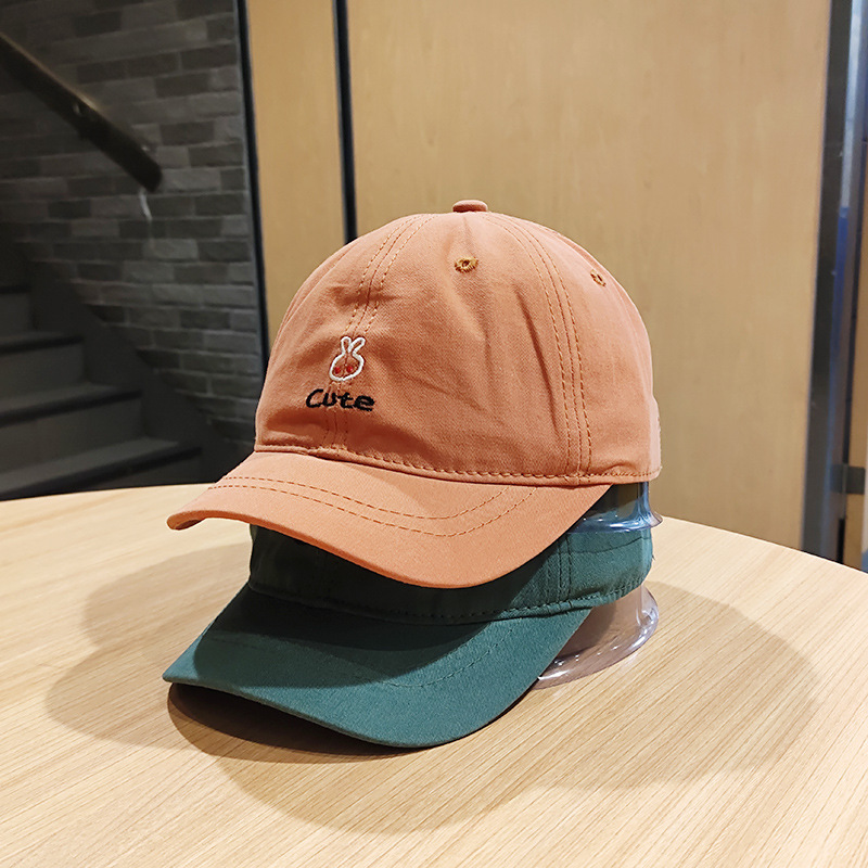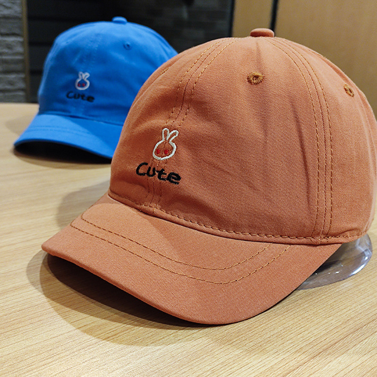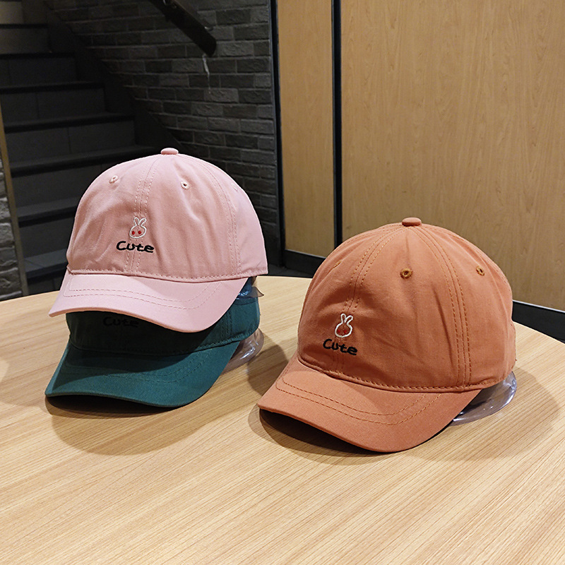 春夏韩版甜美可爱兔子刺绣短檐棒球帽女春夏百搭纯棉鸭舌帽ins潮