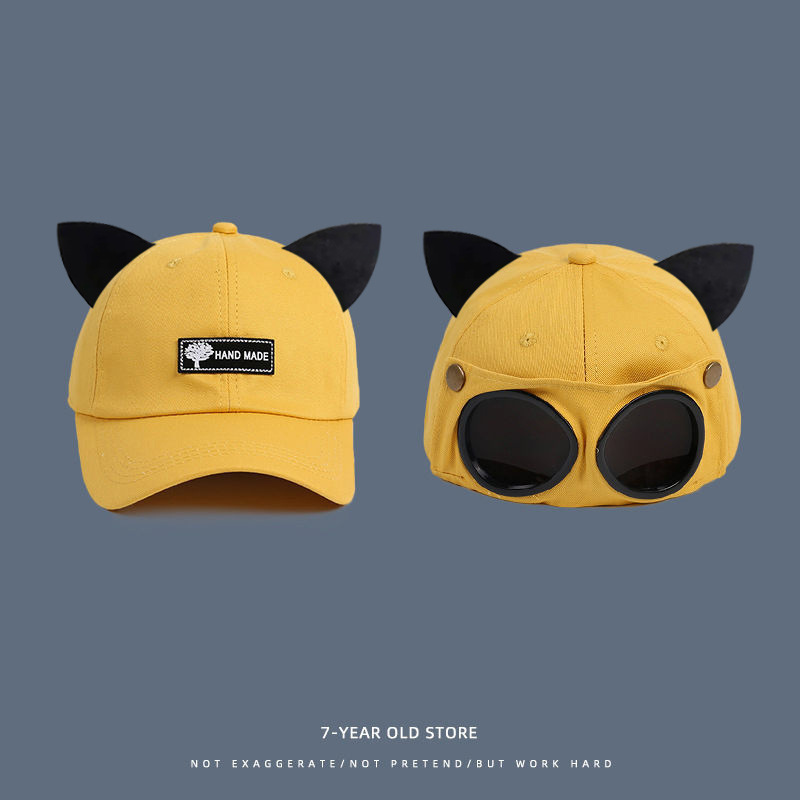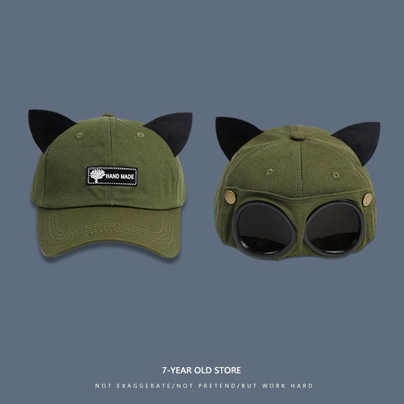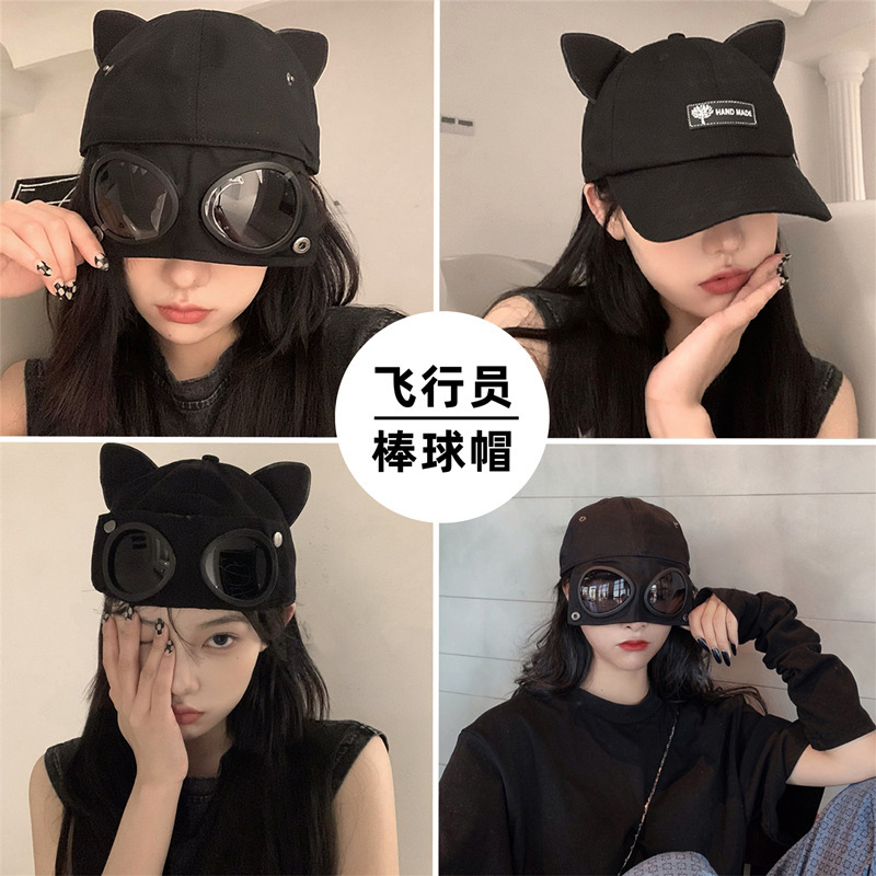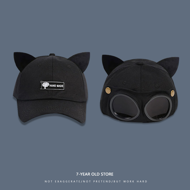 可爱猫耳朵眼镜棒球帽男女情侣大头搞怪鸭舌帽网红韩版飞行帽子潮