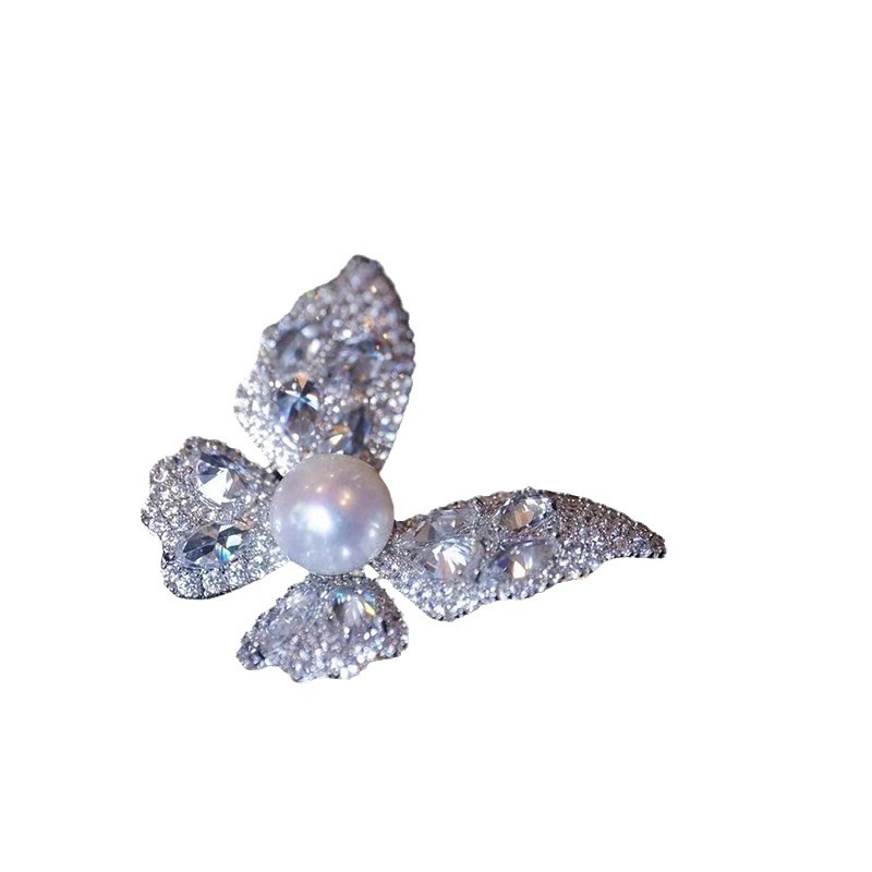 小香风天然淡水珍珠蝴蝶胸针高级感小众名媛气质服饰锆石别针秋冬