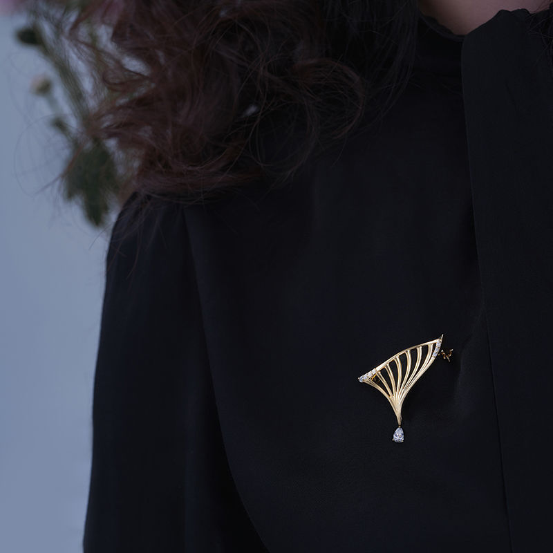 小众设计流光扇叶气质镀金小众胸针设计高级感饰品