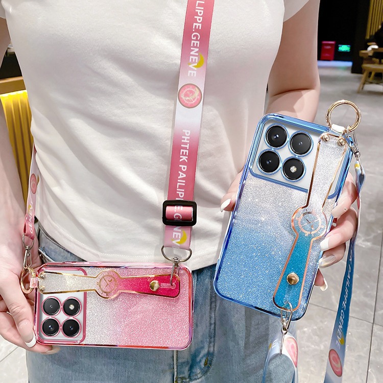 适用红米K70手机壳K70pro女新款透明K60腕带支架斜挎挂绳全包防摔