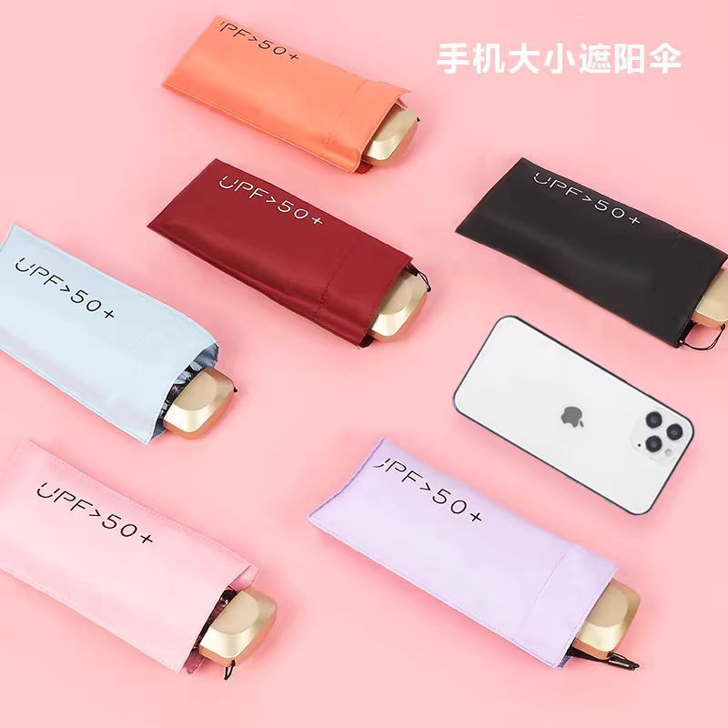 六折遮阳伞小巧便携超轻迷你太阳伞女黑胶防紫外线卡包口袋伞