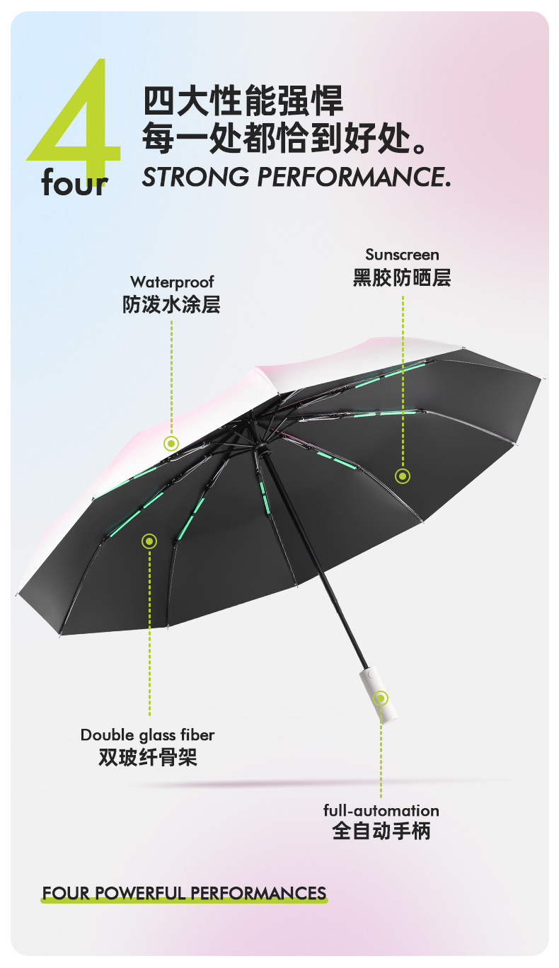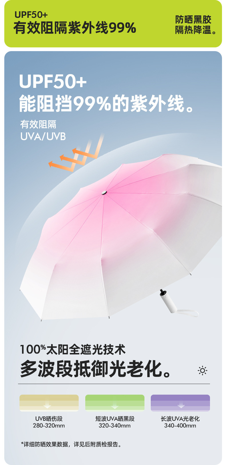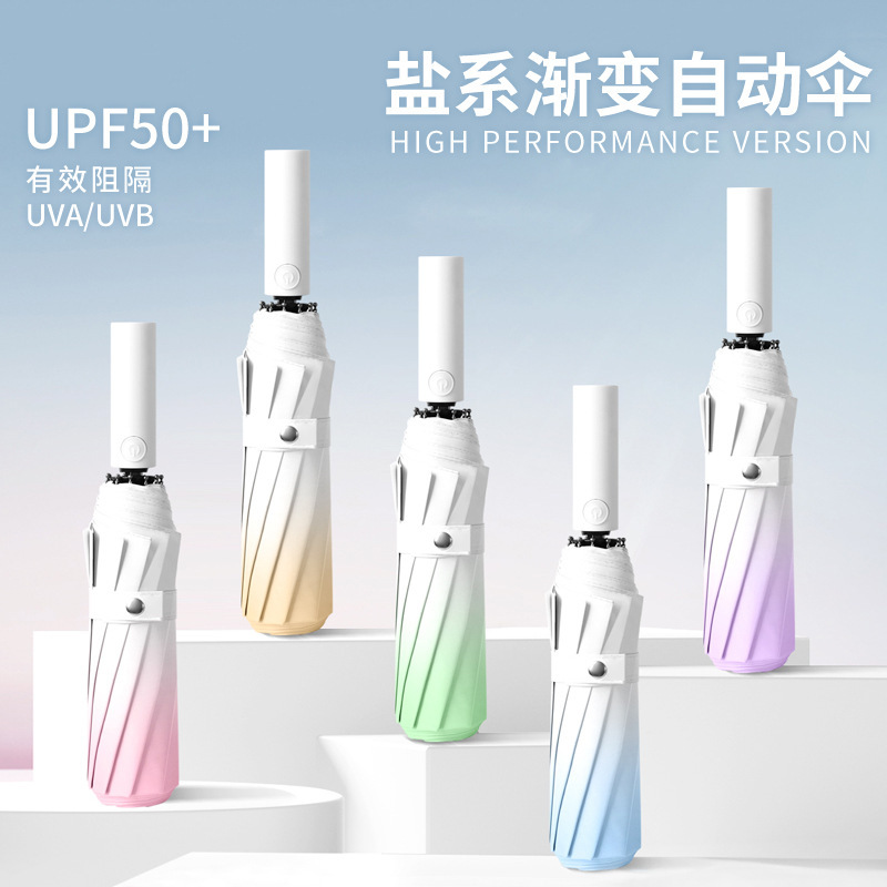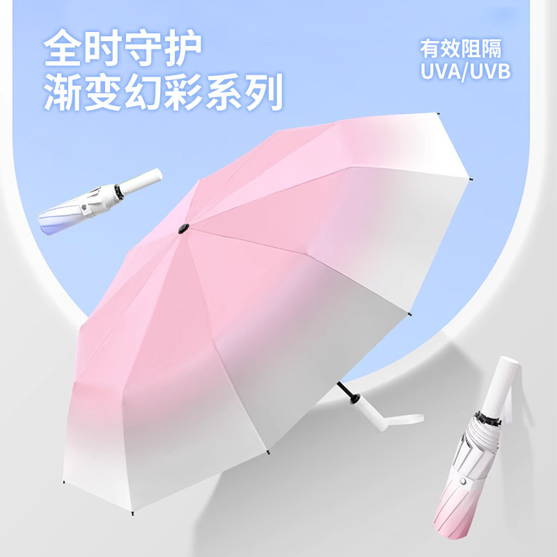 全自动10骨反向伞渐变折叠雨伞防紫外线防晒遮阳太阳伞黑胶晴雨伞