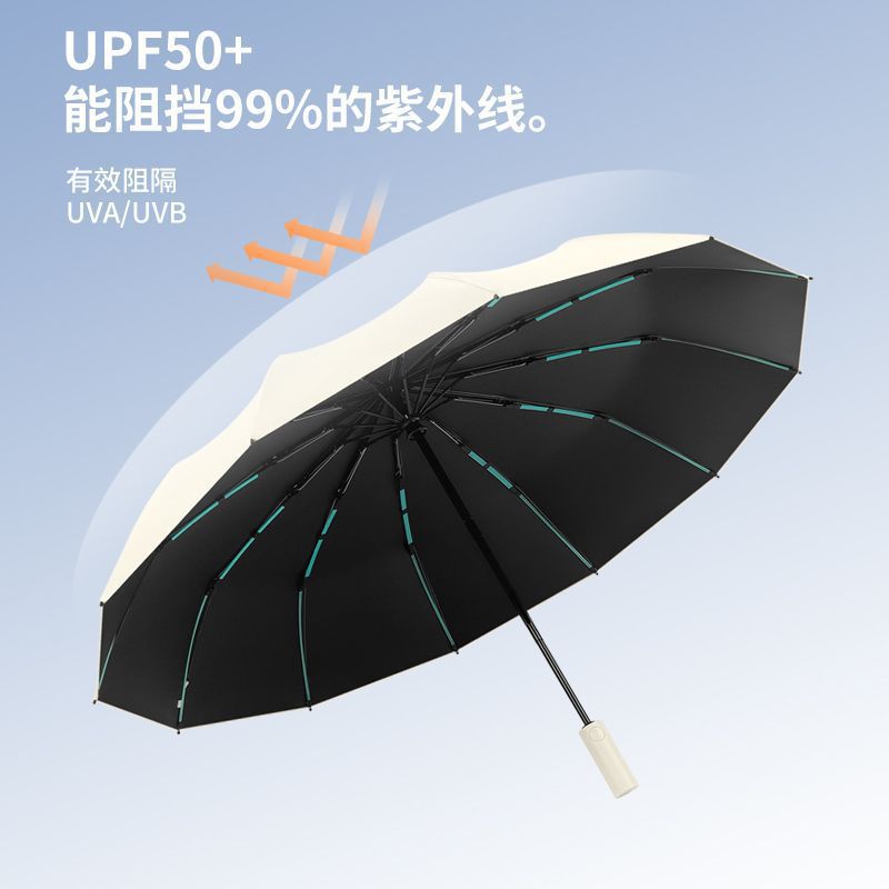 晴雨伞全自动黑胶折叠伞批发 小清新纯色防晒防紫外线三折遮阳伞