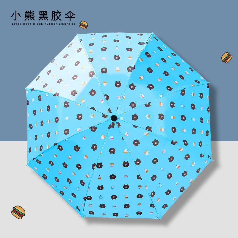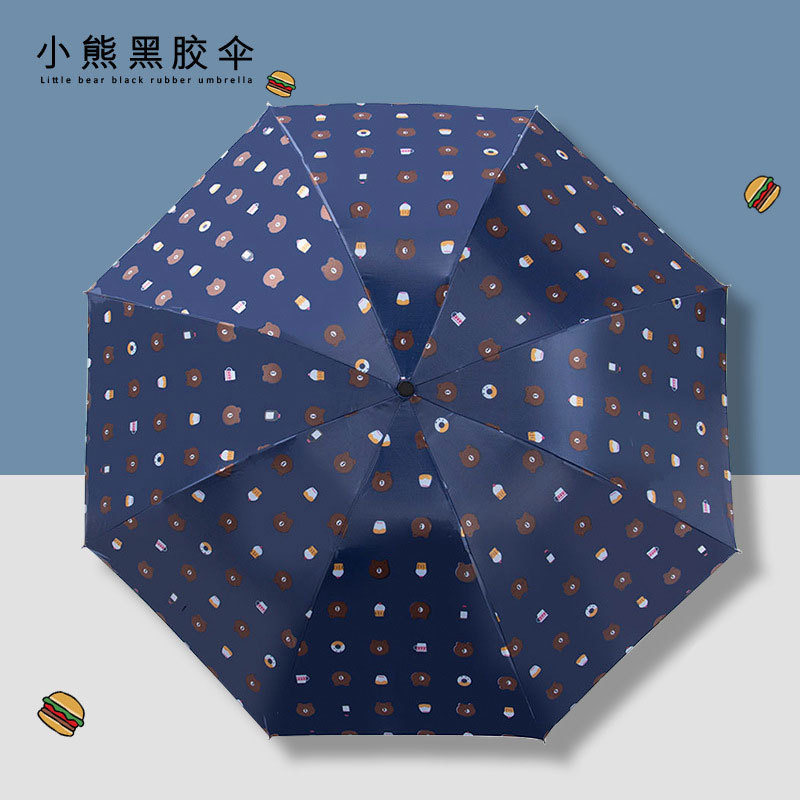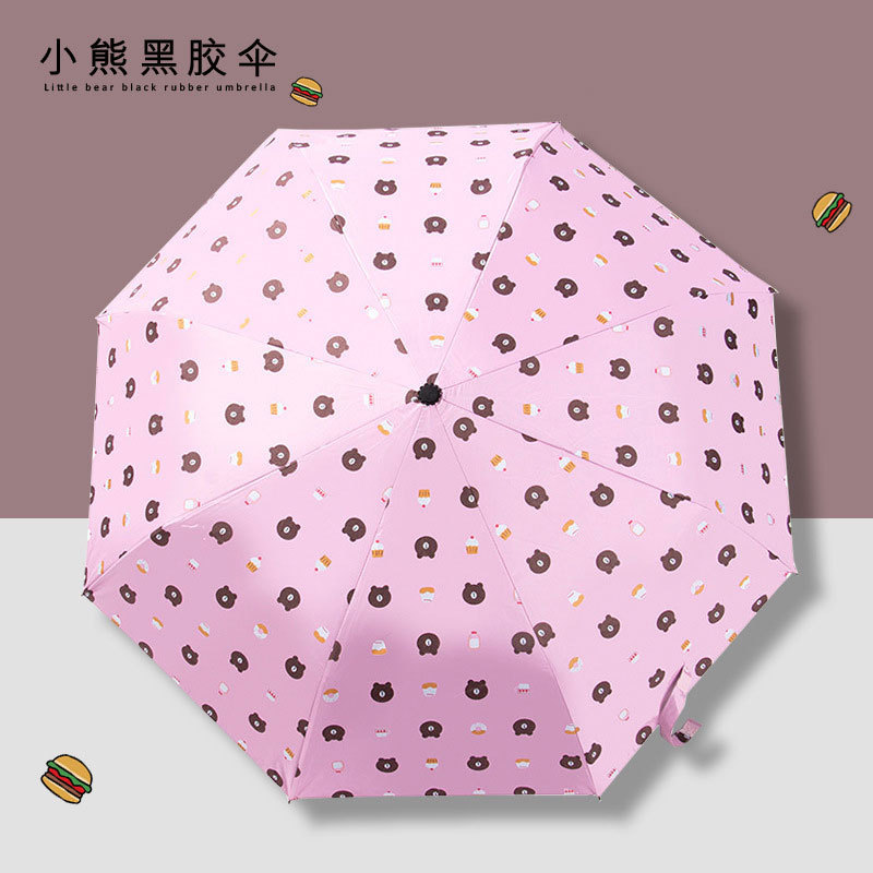 晴雨两用动漫小熊黑胶折叠伞八骨太阳伞防晒防紫外线遮阳雨伞