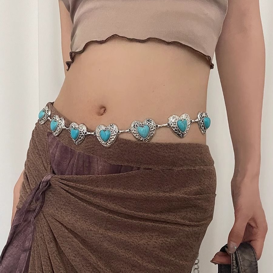 腰链波西米亚金属压花心形腰链宝石镶嵌女配裙子高级感装饰腰带