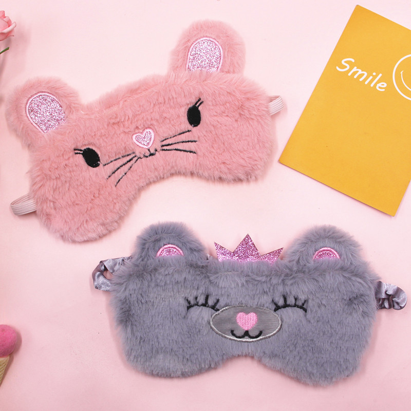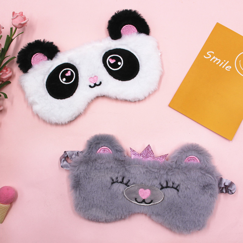 跨境新款可爱创意熊猫眼罩遮光皇冠灰熊睡眠卡通柔软眼罩礼品