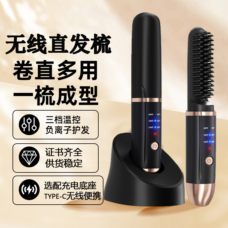 无线直发梳跨境新品便携式直发梳负离子不伤发直卷两用直发器