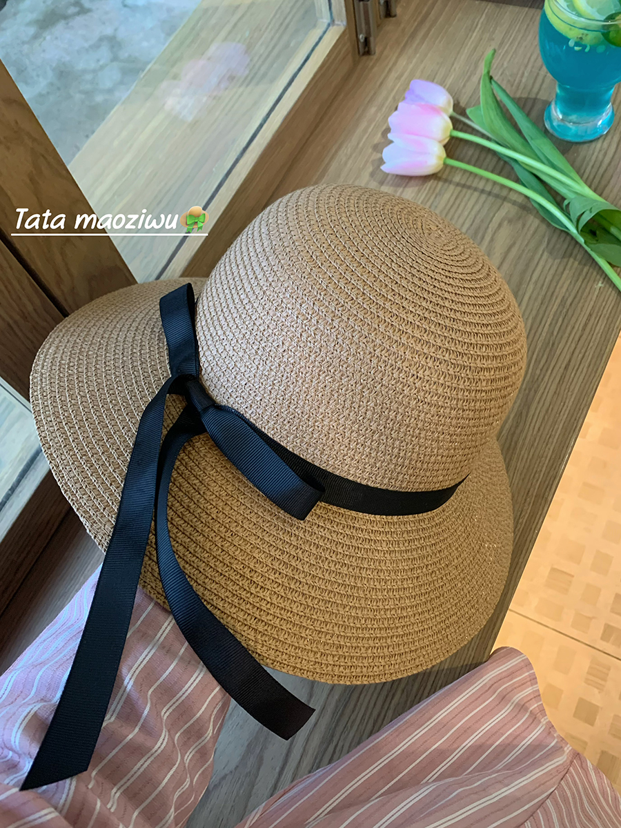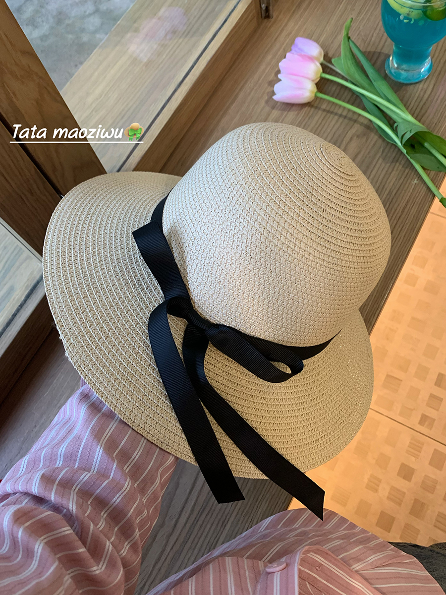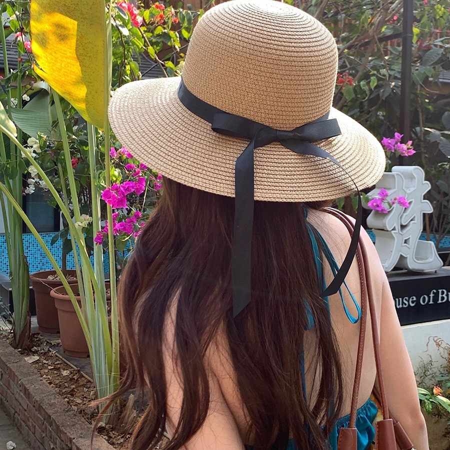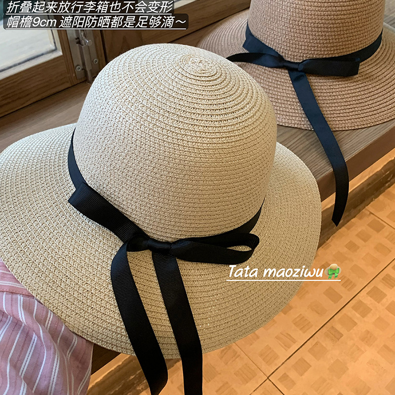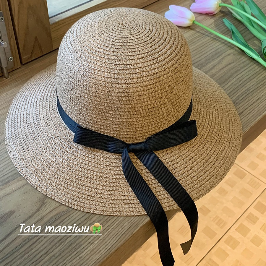 大檐遮阳防晒草帽海边女新款春夏季蝴蝶结草编沙滩度假防晒帽