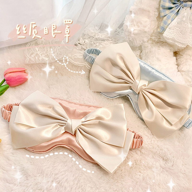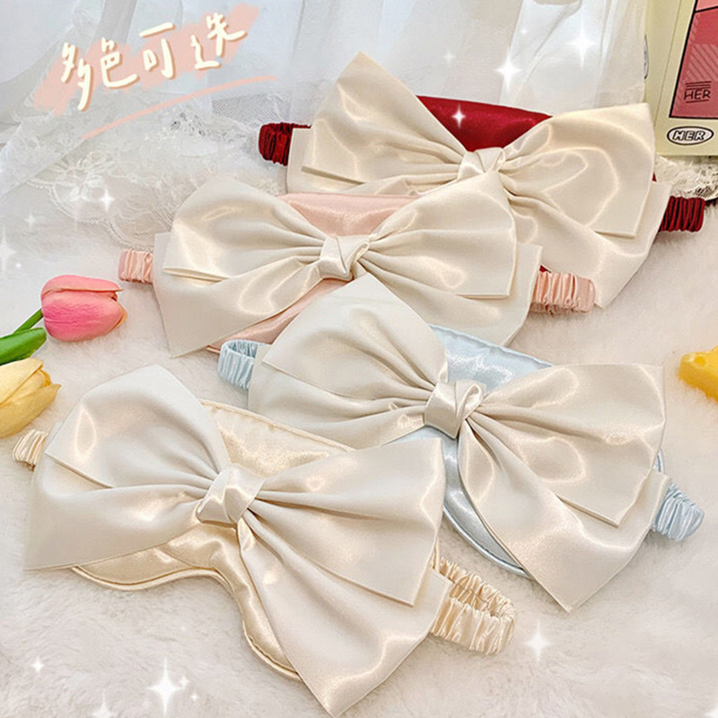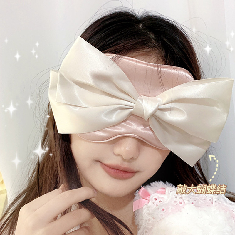 新款韩版少女心蝴蝶结仿真丝女午休睡觉遮光睡眠护眼罩
