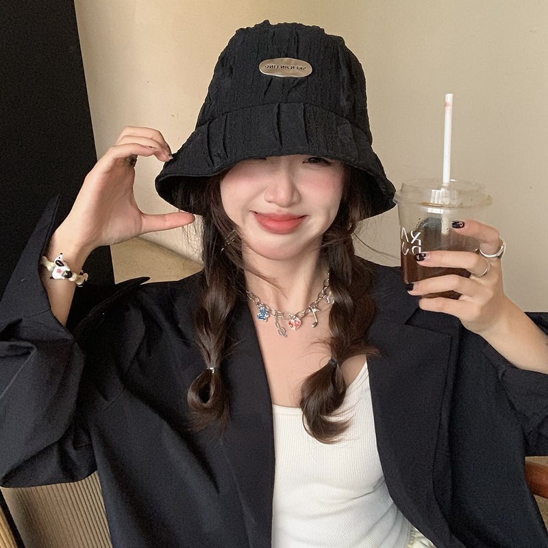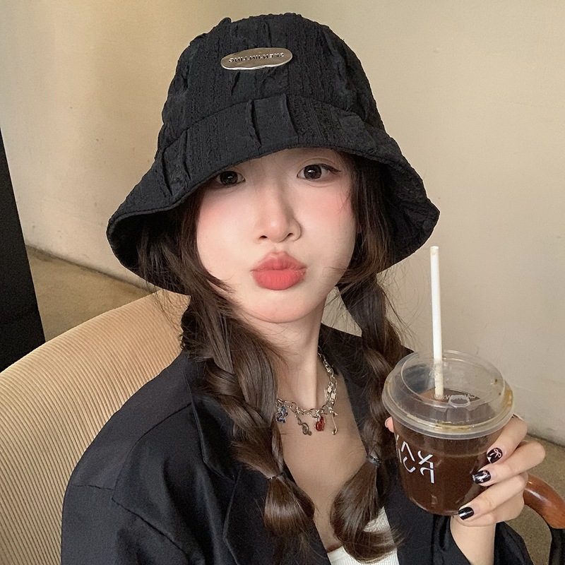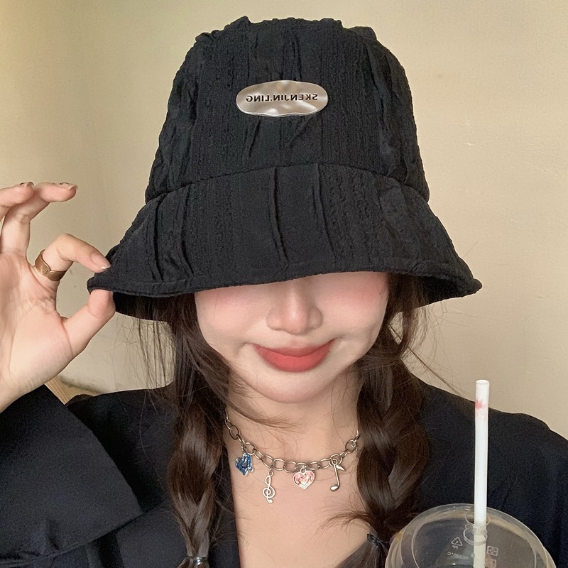 显脸小渔夫帽子女春秋百搭素颜气质遮阳帽新款褶皱遮脸大头围盆帽