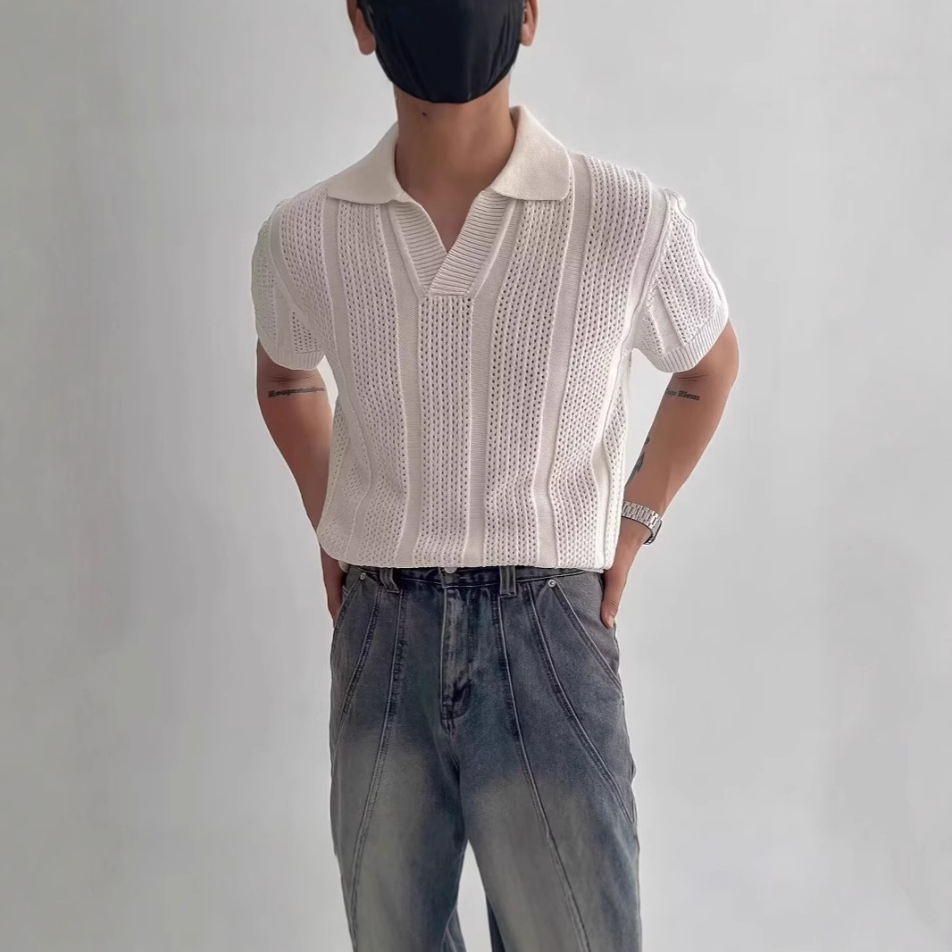 欧式镂空网眼纹理针织短袖polo衫T恤男夏季薄款轻熟风上衣体恤衫