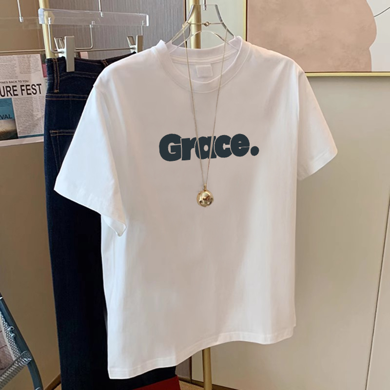 夏季新款白色纯棉短袖t恤女宽松百搭时尚洋气字母印花上衣ins