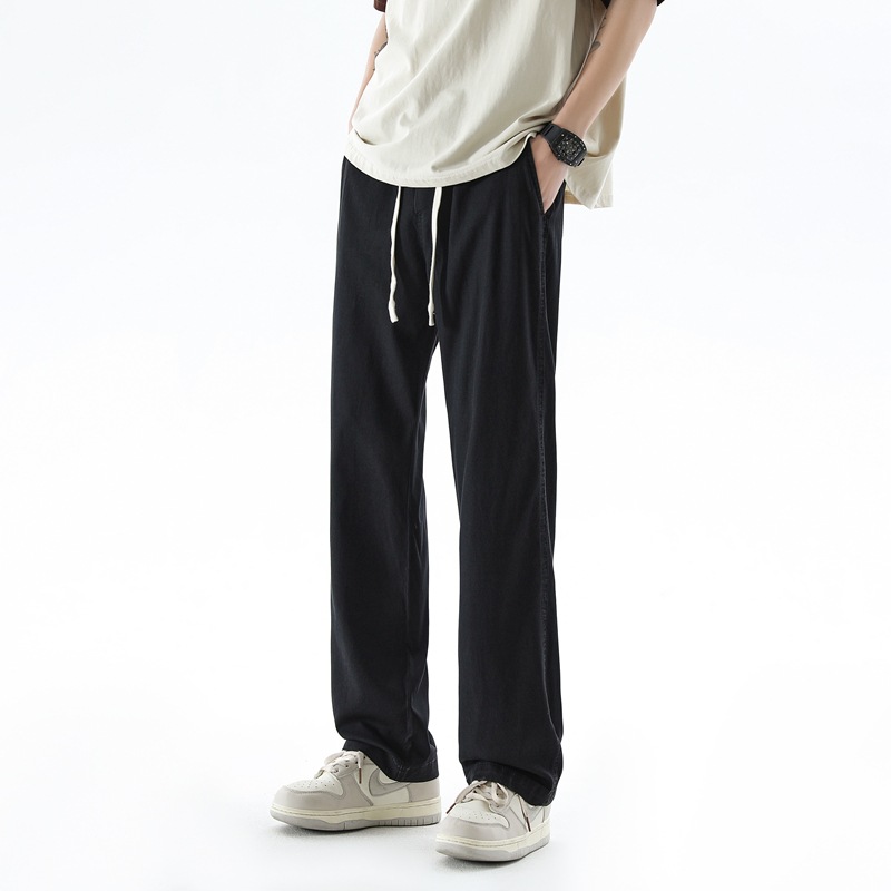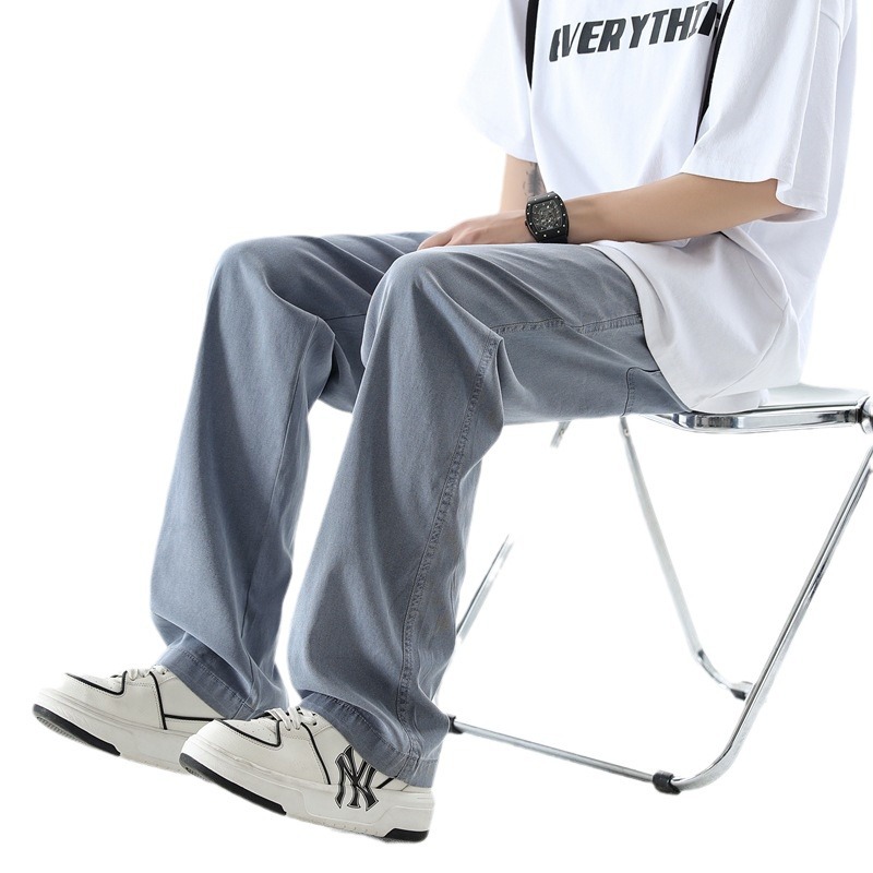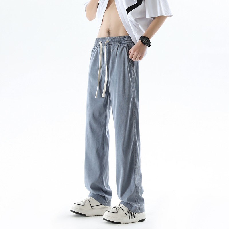 男式冰丝牛仔裤男士宽松港风韩版潮流百搭复古潮牌直筒天丝长裤男