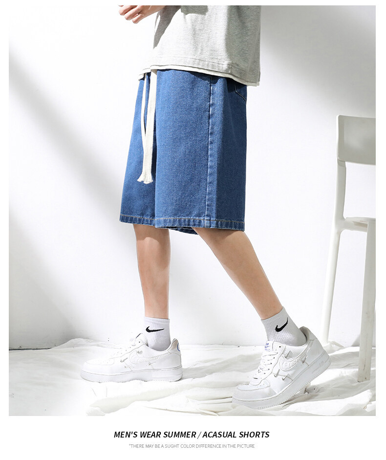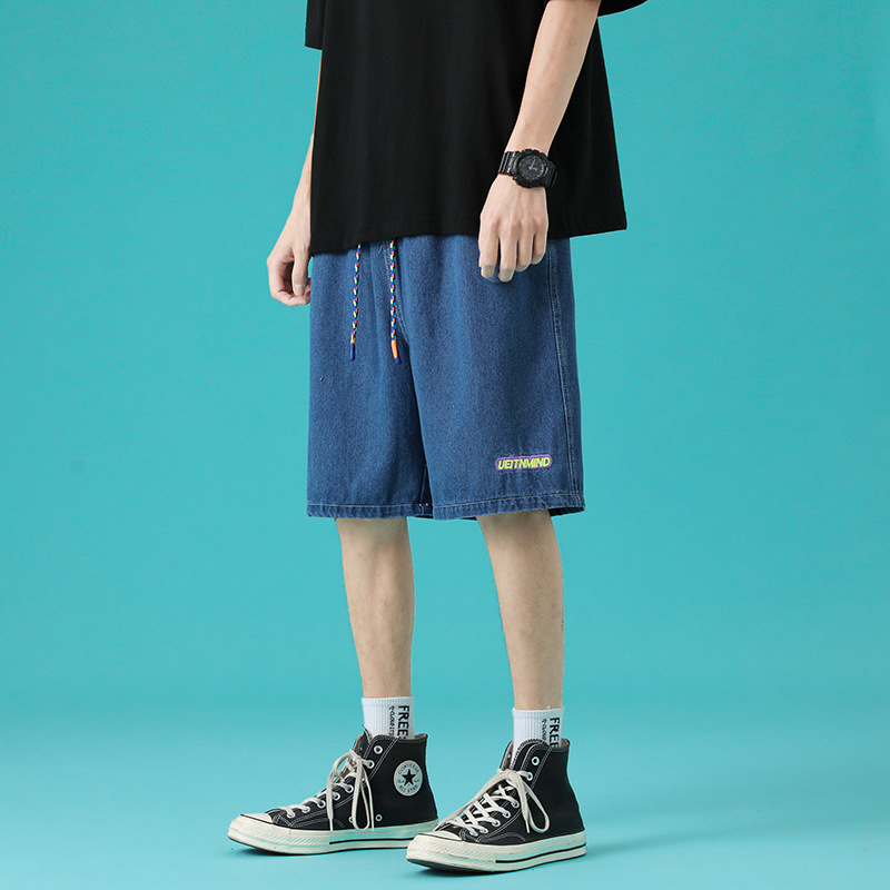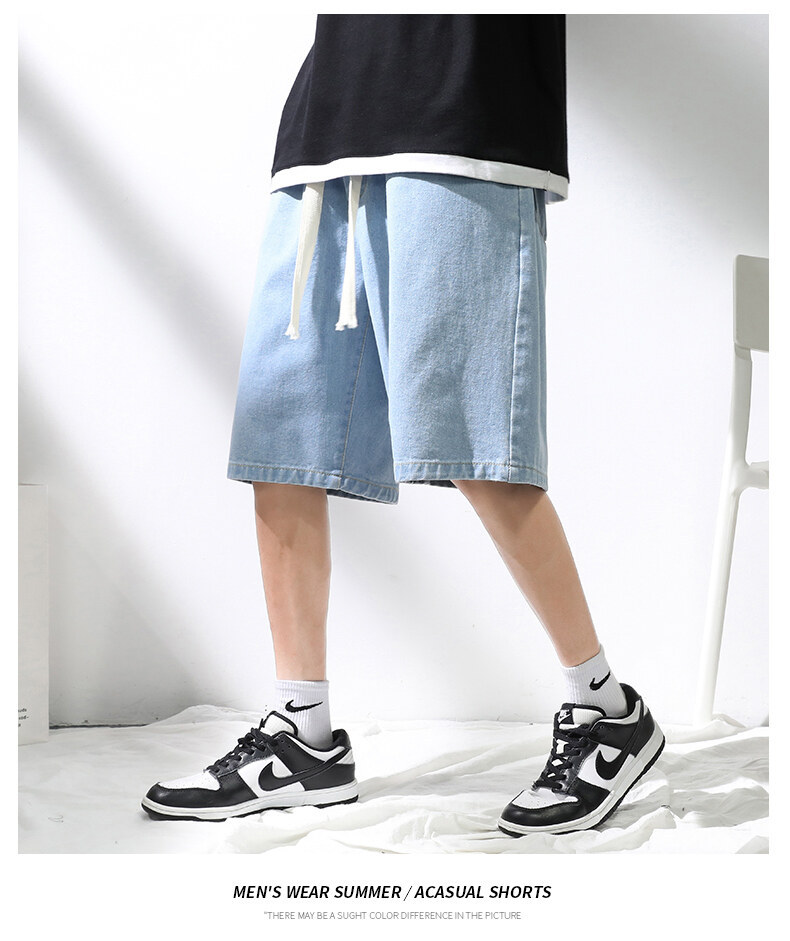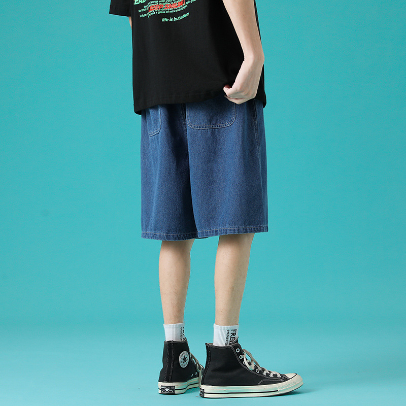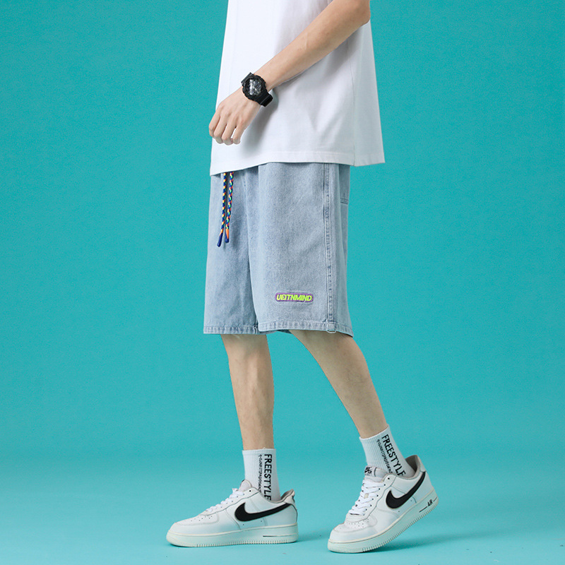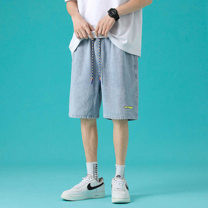 牛仔短裤男夏季薄款日式做旧潮牌时尚直筒复古宽松大码休闲五分裤