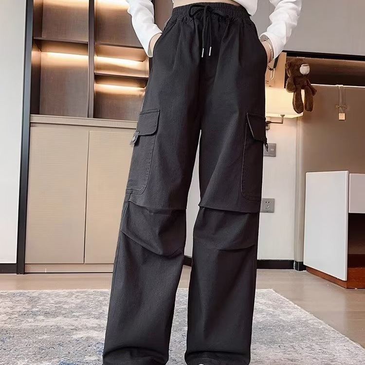 美式工装裤女童春季新款抽绳打褶宽松休闲裤直筒垂感降落伞裤