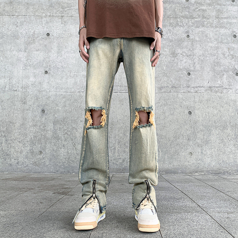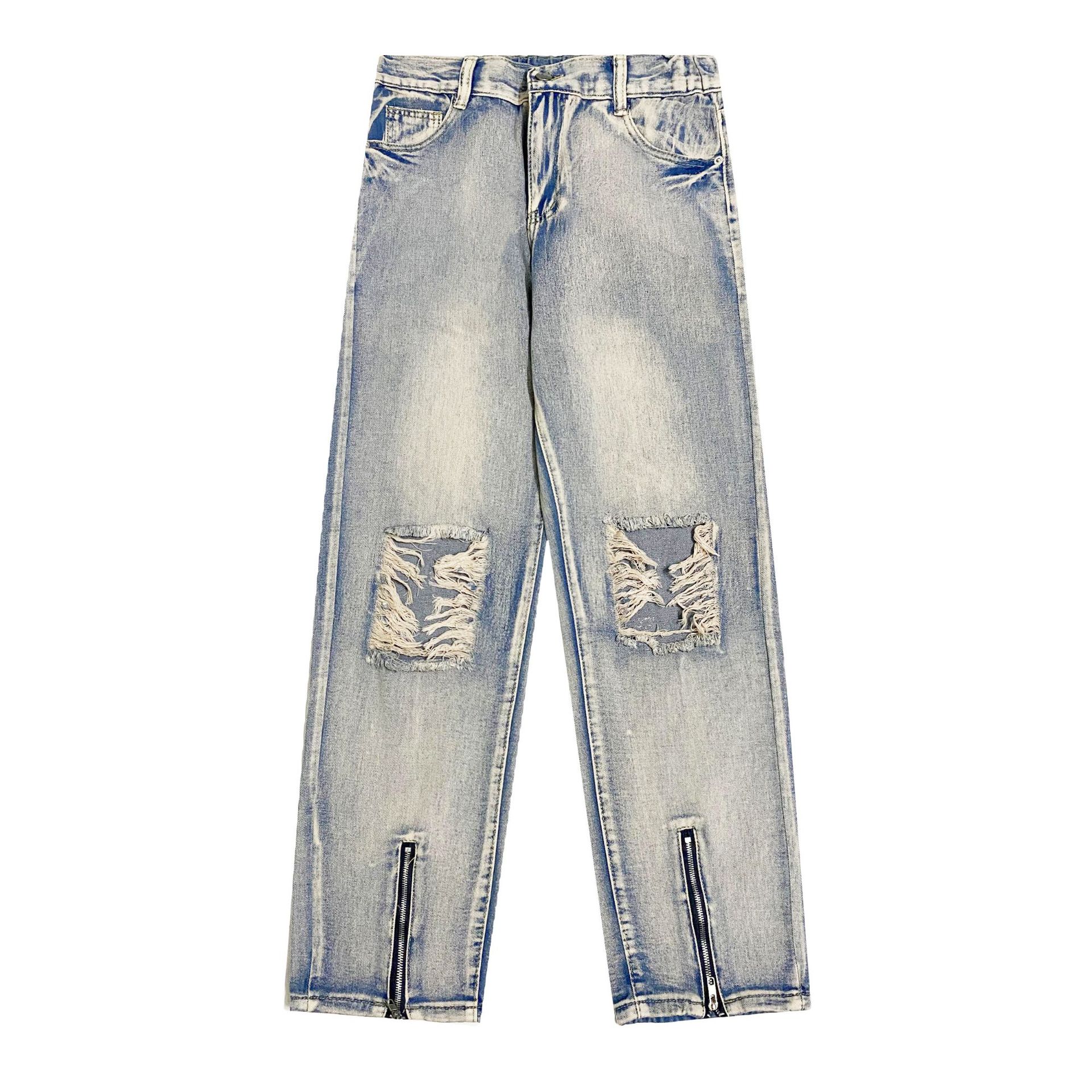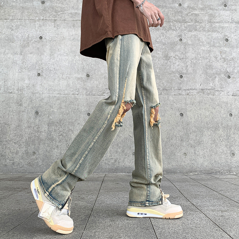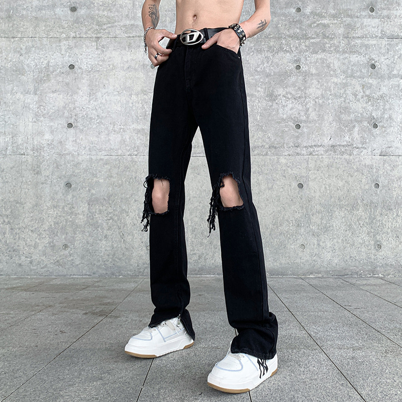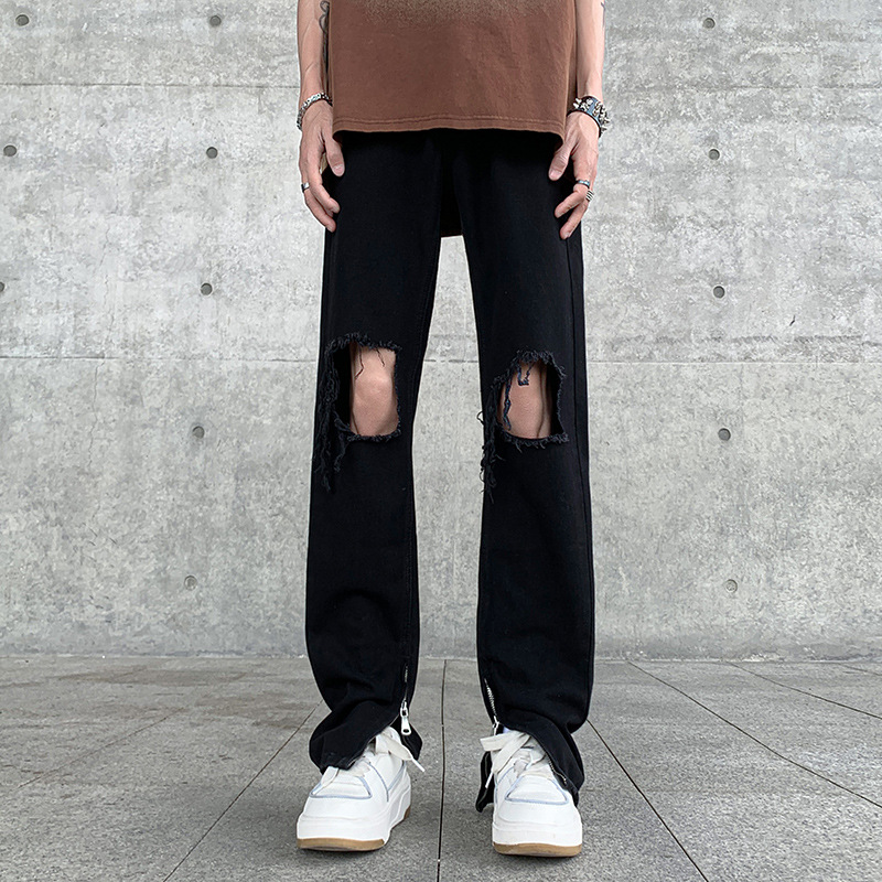 破洞牛仔裤潮破宽松直筒夏季薄款夏天港风潮牌休闲阔腿裤子男款