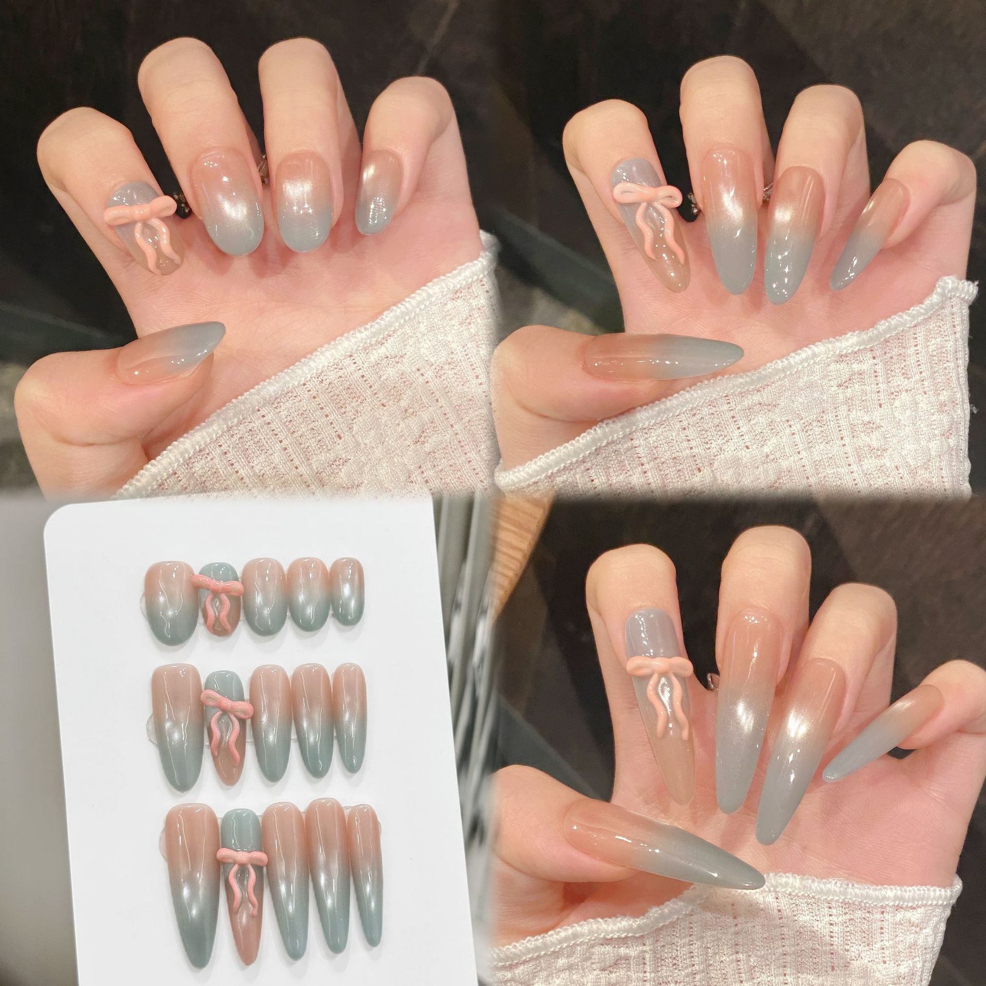 艺禾【冷雾】蝴蝶结少女心梦幻爆款情人节猫眼长款粉蓝色穿戴甲