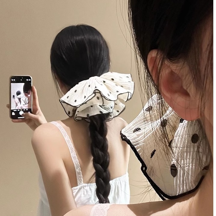 法式复古高级感双层白色大朵波点大肠发圈气质优雅头绳头花发绳