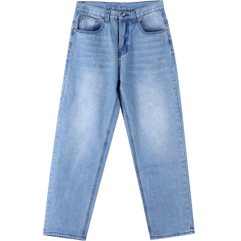 欧美浅蓝加大码牛仔裤男宽松休闲潮流嘻哈HIPHOP街舞长裤滑板裤子