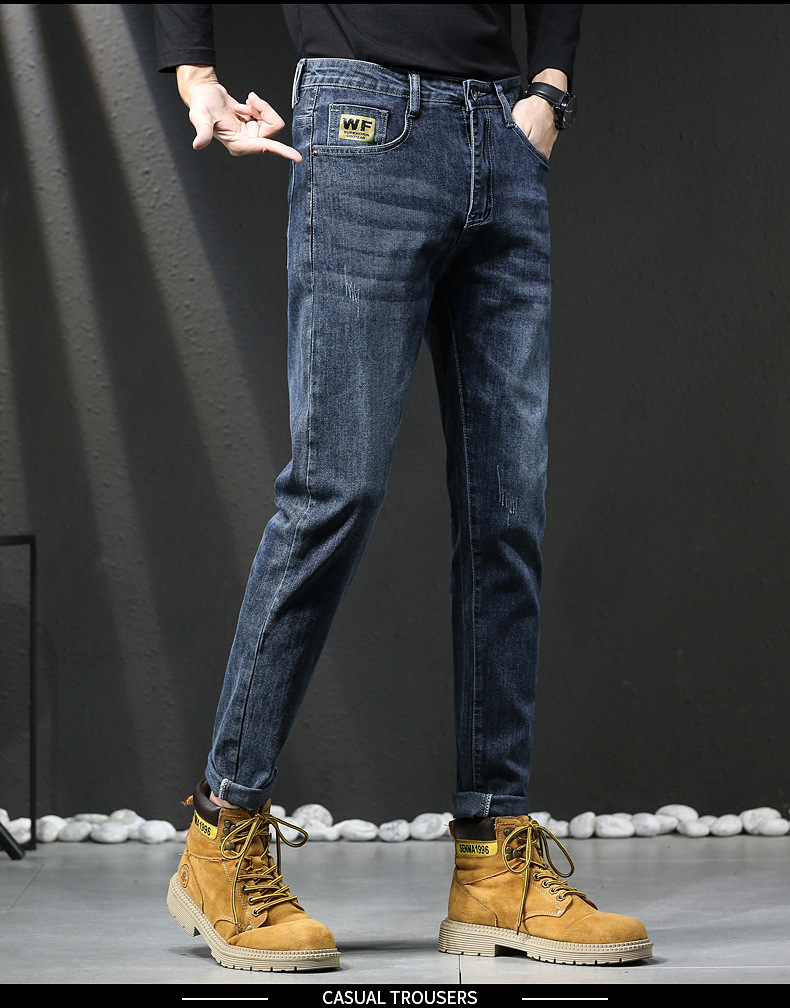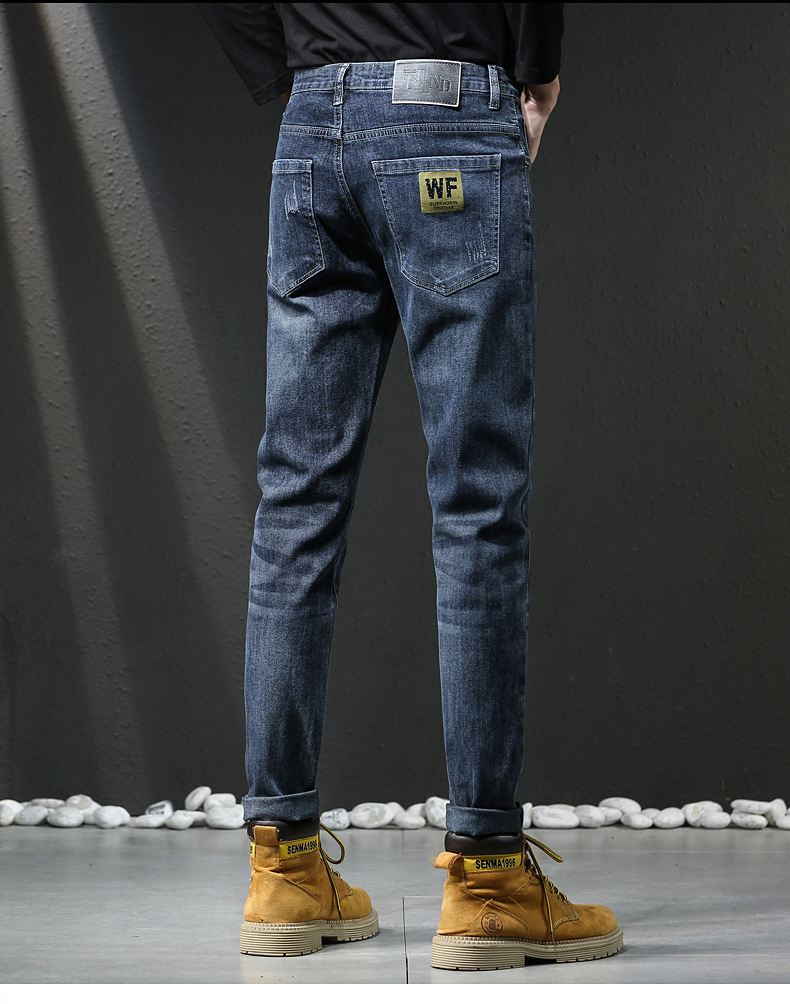 秋季新款怀旧牛仔裤男士修身小脚休闲哈伦长裤韩版潮流弹性裤子