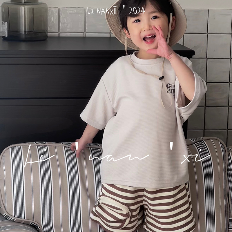 24夏新品儿童T恤男女童字母印花特种面料短袖圆领宽松大版上衣