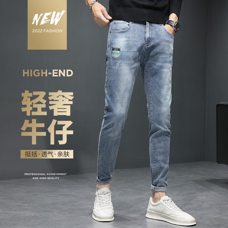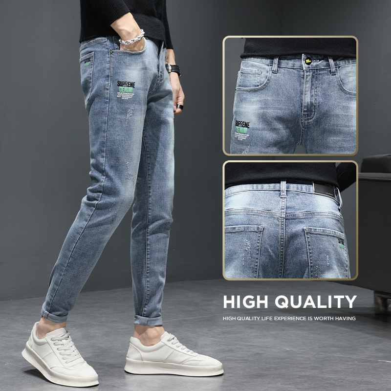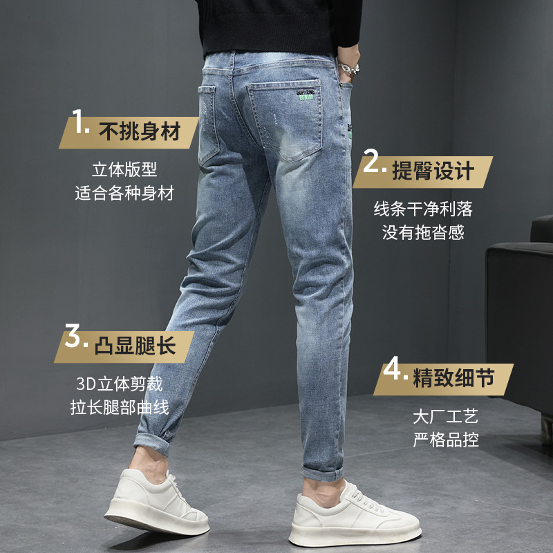 牛仔裤男士春秋季新款休闲潮流直筒男士裤子秋冬潮牌男装小脚长裤