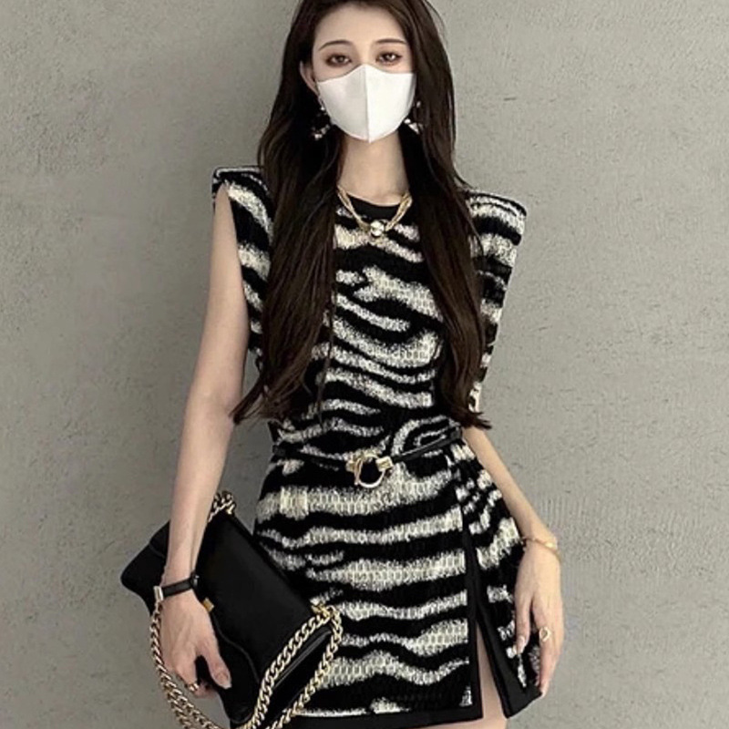 连衣裙女韩版时尚撞色设计感夏季小众新款辣妹风无袖圆领收腰短裙