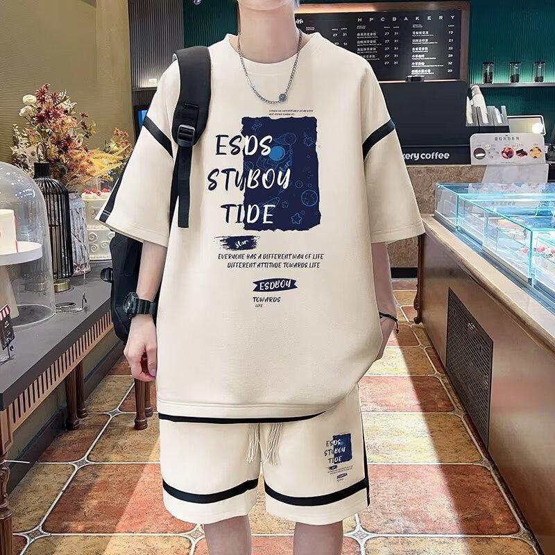 华夫格运动套装男夏季新款潮牌美式短袖短裤搭配高级设计感两件套