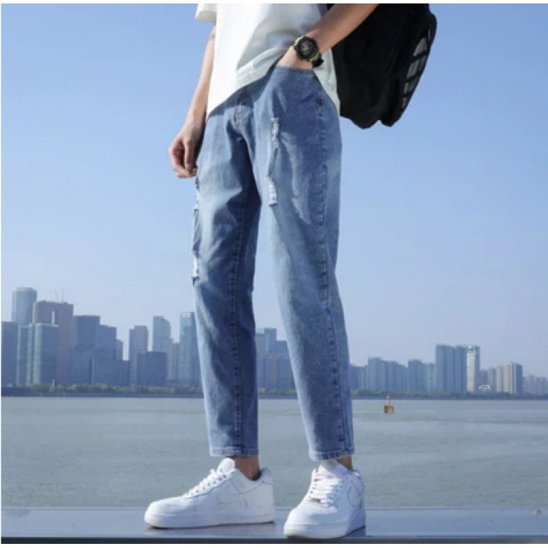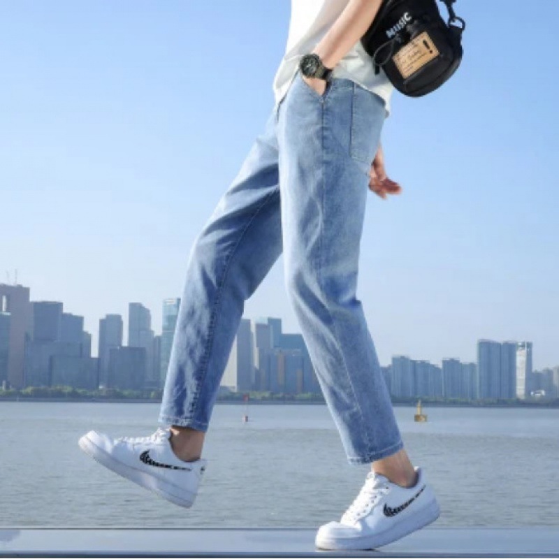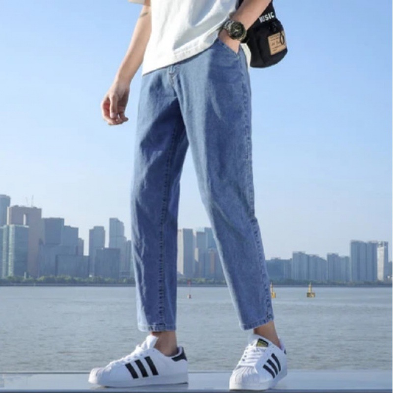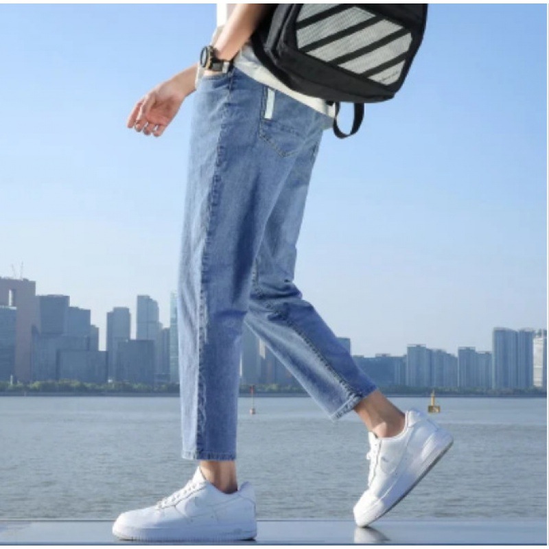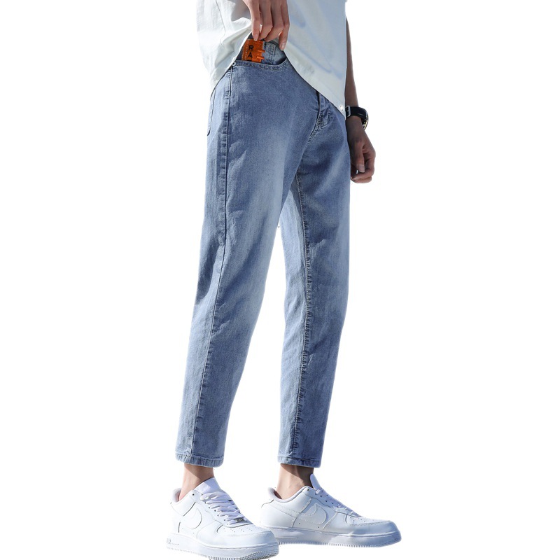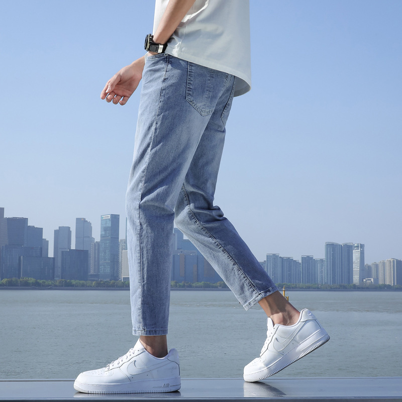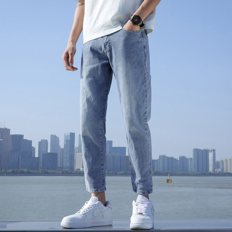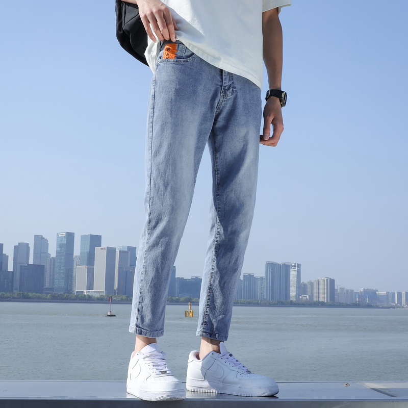 春夏季浅色牛仔裤男士宽松九分休闲裤男生修身9分长裤子潮牌男款