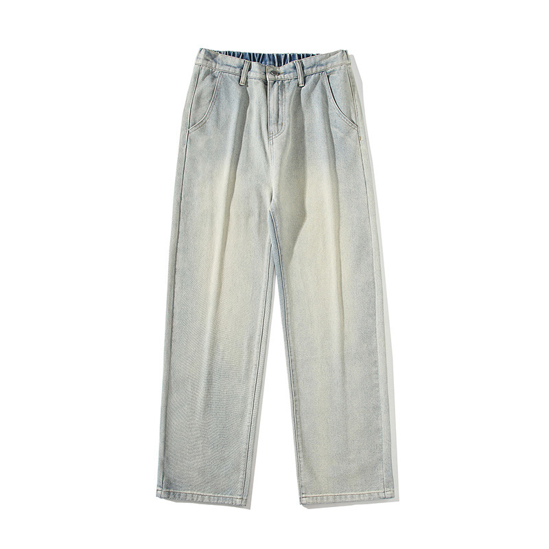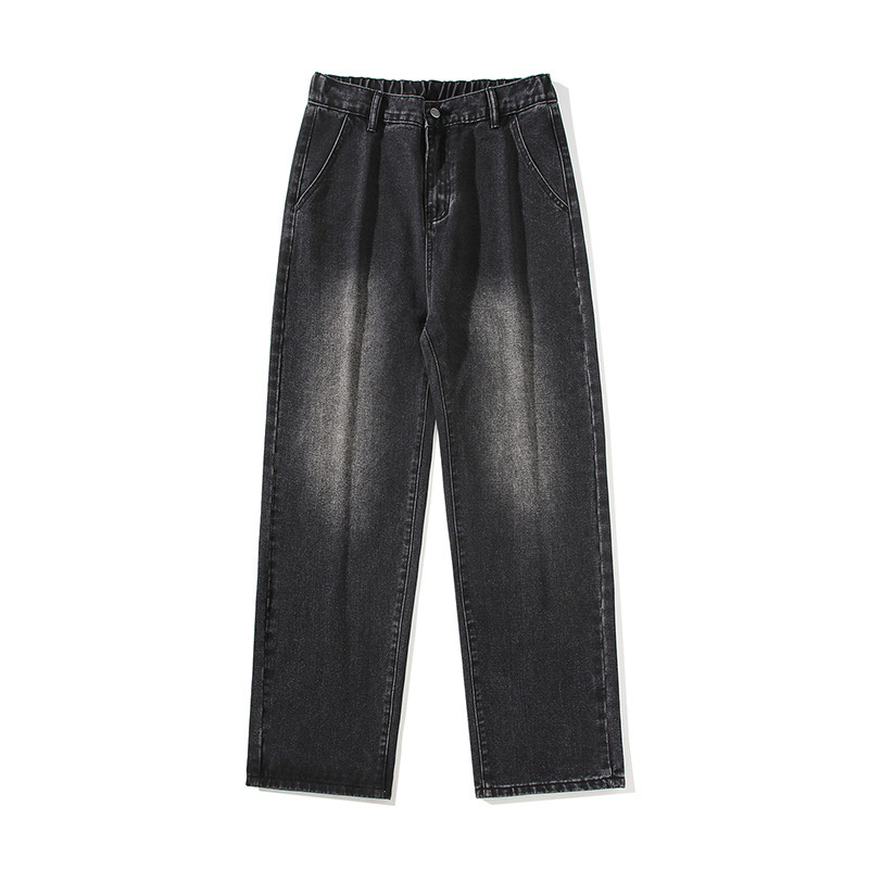 新款港风做旧牛仔裤男士高街直筒宽松休闲韩版潮流休闲阔腿长裤子