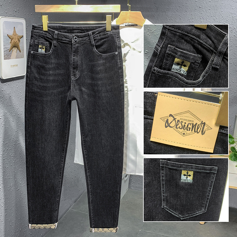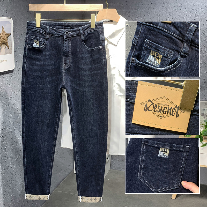 新款高端牛仔裤男士修身四季款修身哈伦四季弹性牛仔裤长裤子男