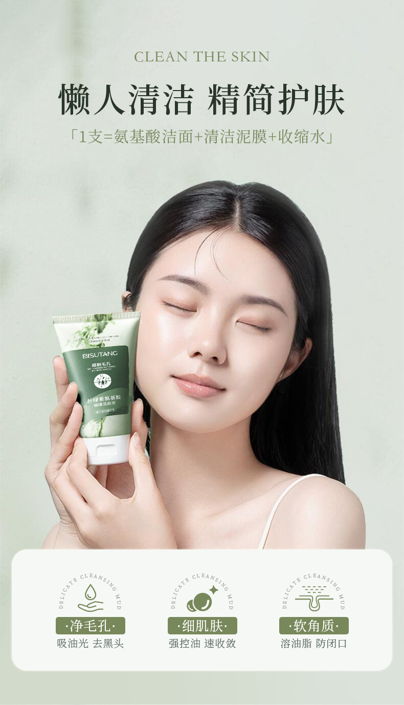 碧素堂叶绿素氨基酸细嫩洁面泥深层清洁平衡水油去黑头角质洗面奶