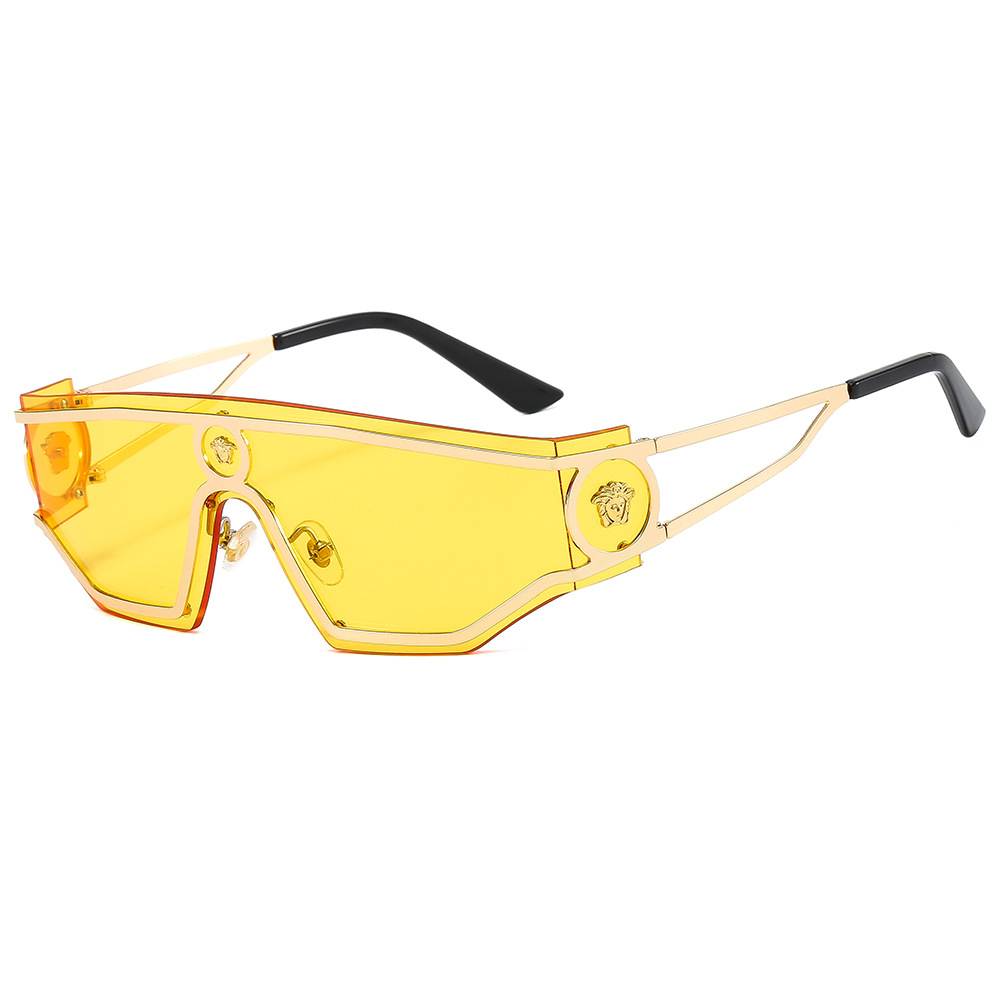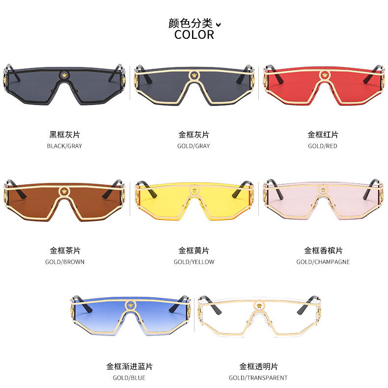 新款欧美跨境金属大框太阳镜个性连体片美人头墨镜时尚男女士眼镜