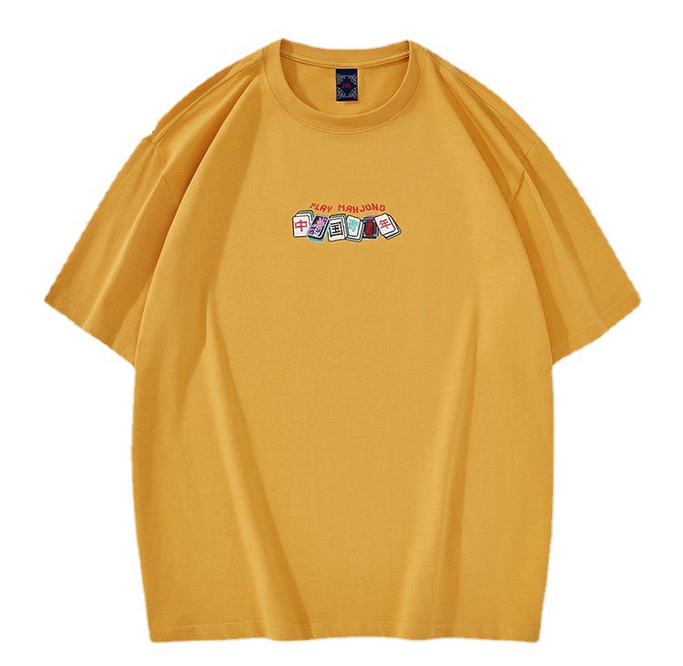 春夏新款纯棉潮流宽松短袖t恤男国潮中国青年刺绣男装