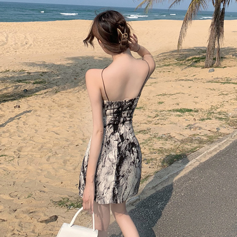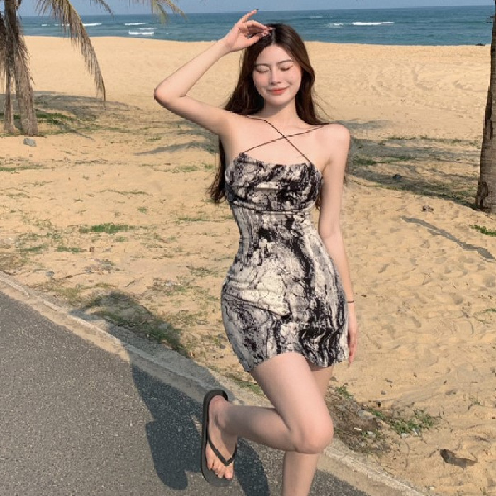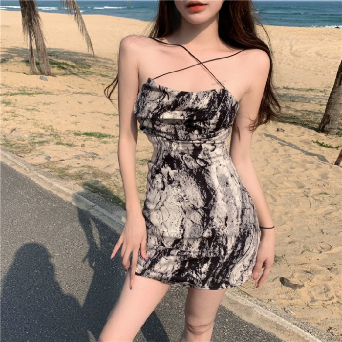 抹胸吊帶连衣裙欧美风新款复古性感包臀短裙一字肩收腰中长款