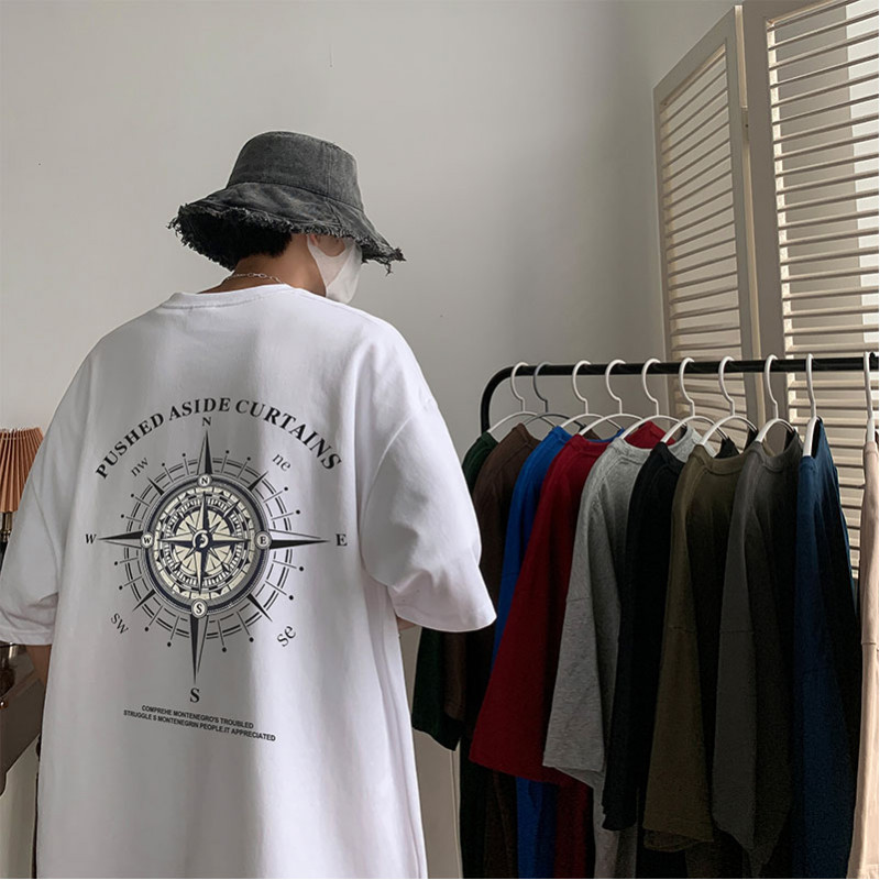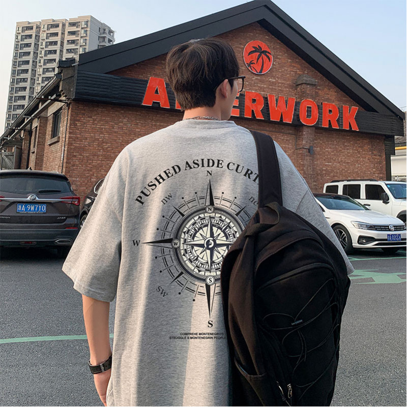 美式复古脏染水洗短袖男夏季重磅纯棉T恤男士潮流印花宽松上衣男