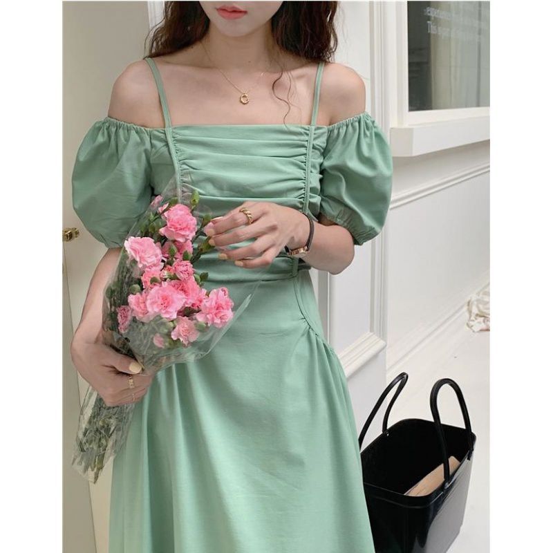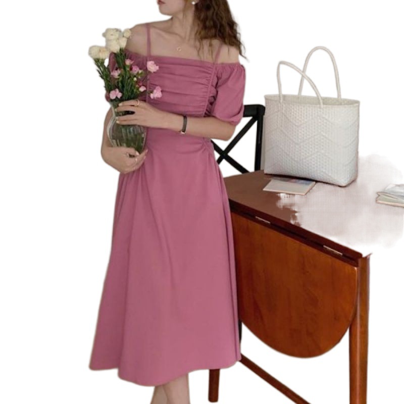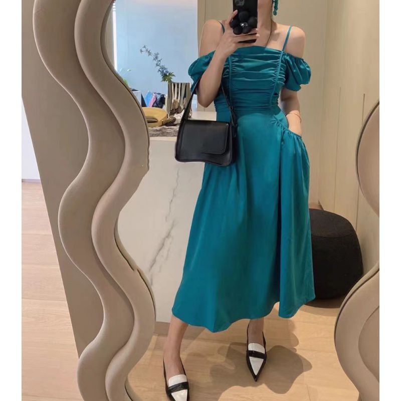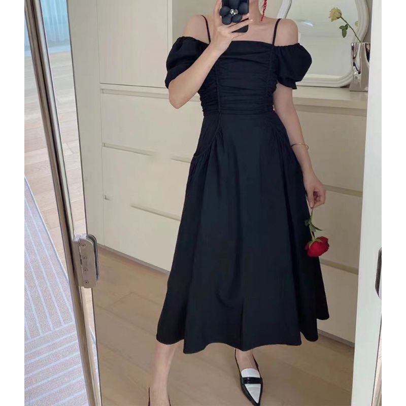 法式一字肩吊带连衣裙女春夏季新款气质收腰中长裙高级感裙子