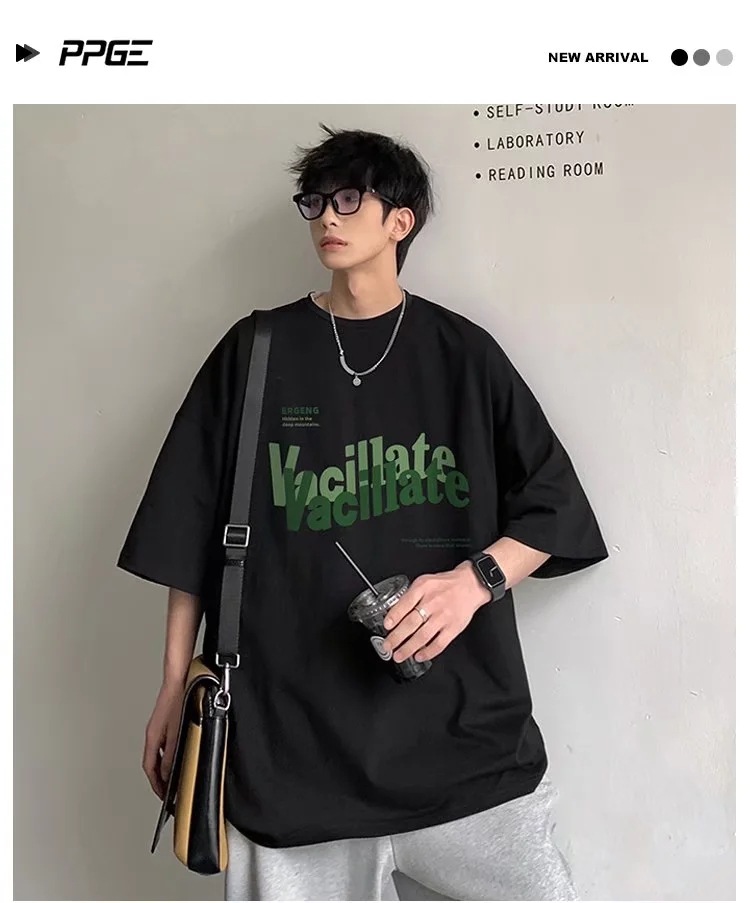 潮牌短袖t恤男不规则拼接圆领设计感时尚开叉纯色半袖气质五分袖