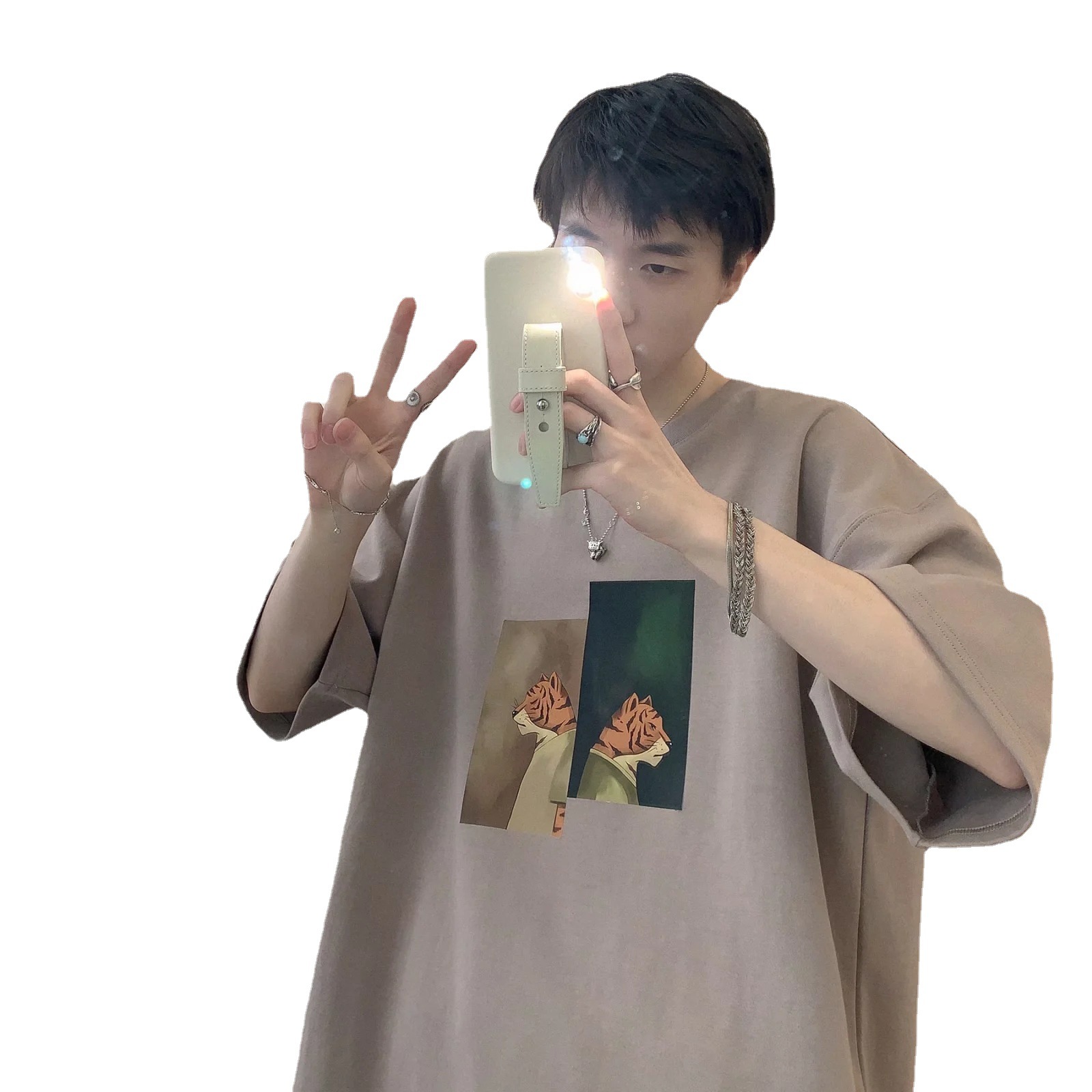 纯棉老虎印花短袖t恤男设计感小众宽松半袖夏新款体恤上衣