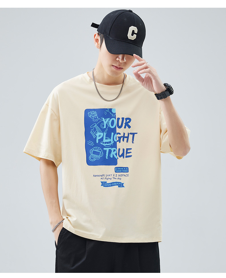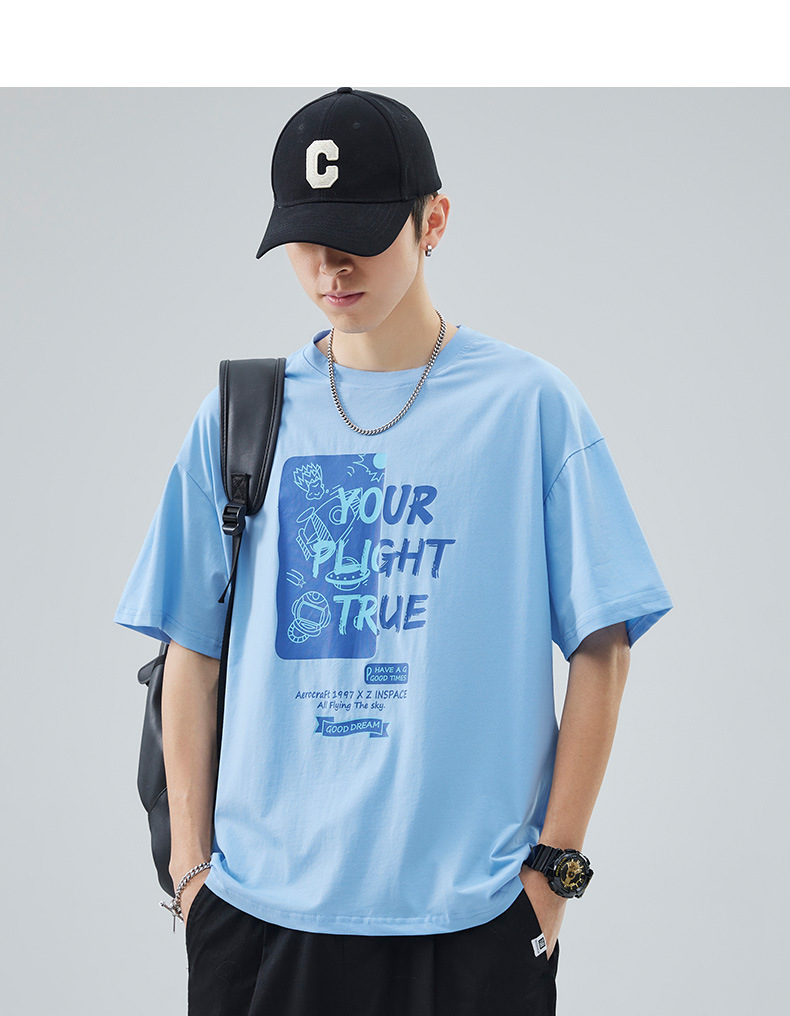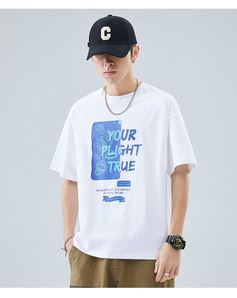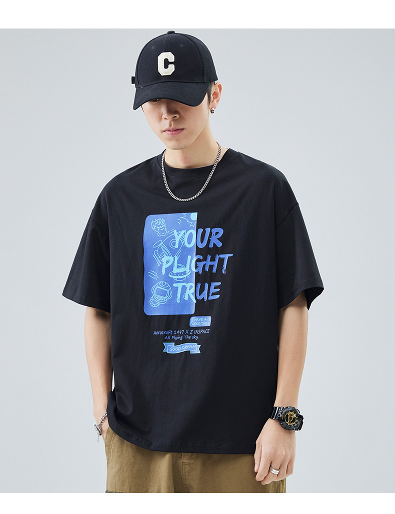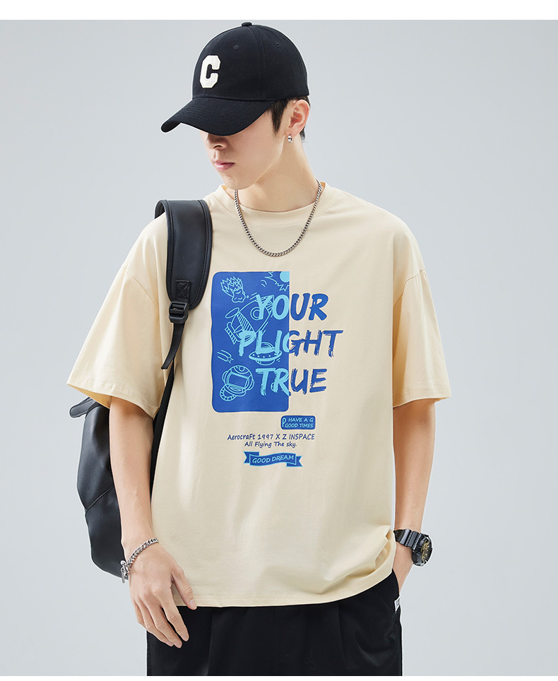 男士短袖t恤夏季新款青少年圆领简约潮牌印花美式高街百搭上衣