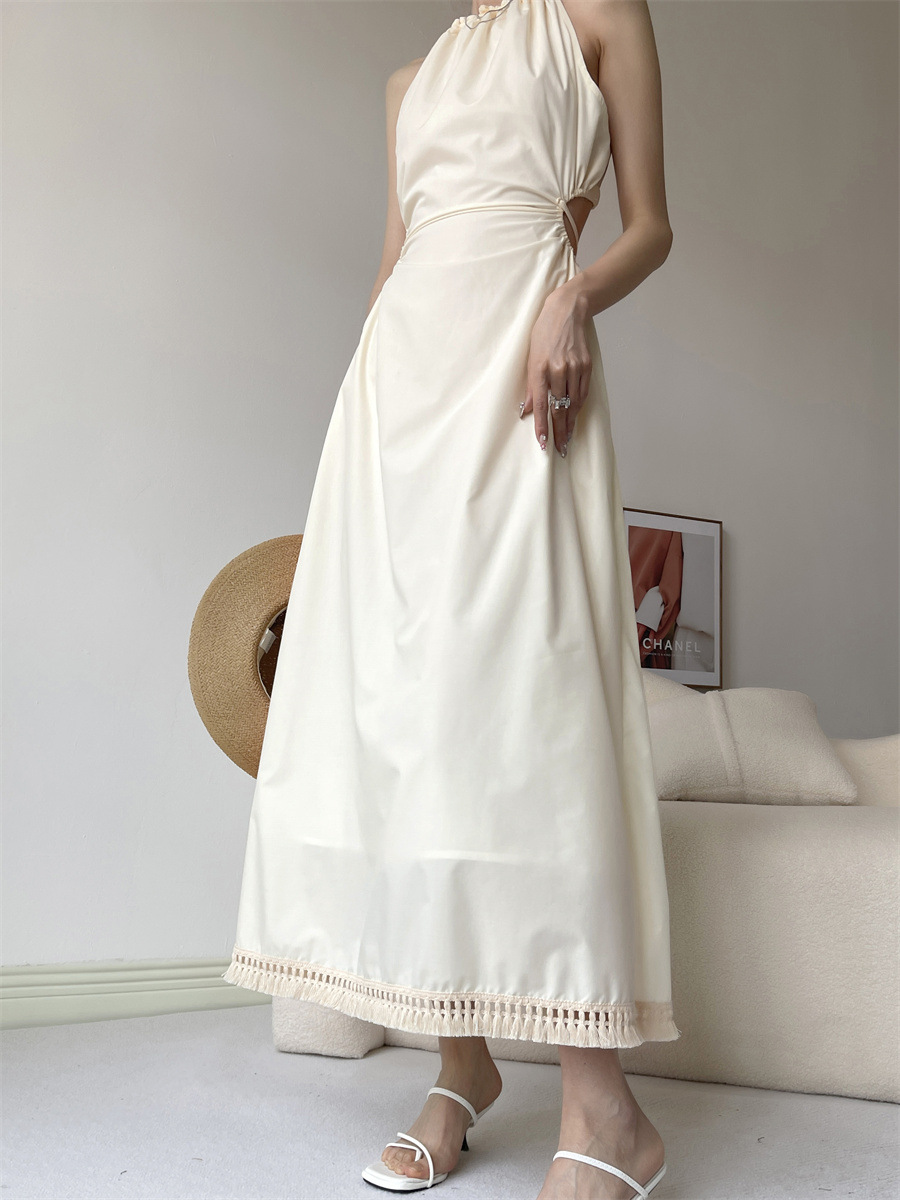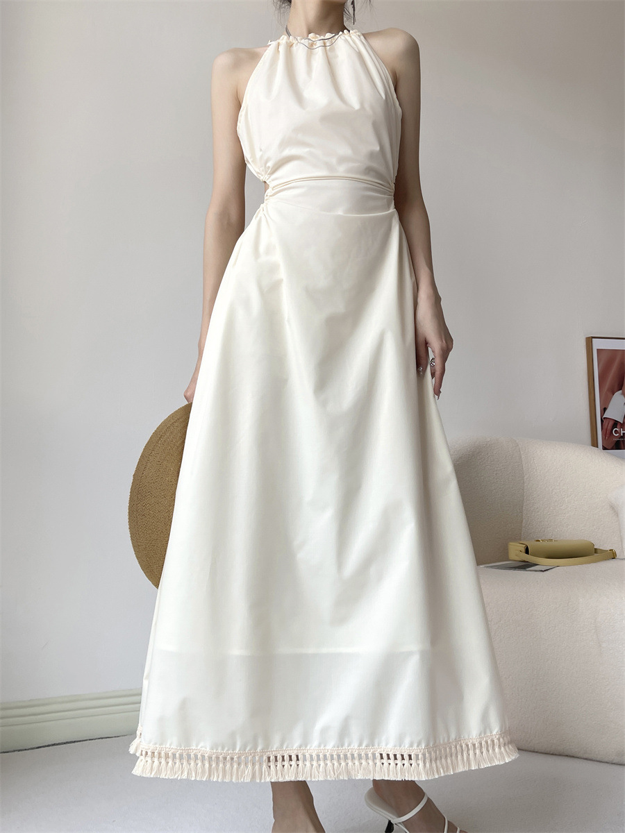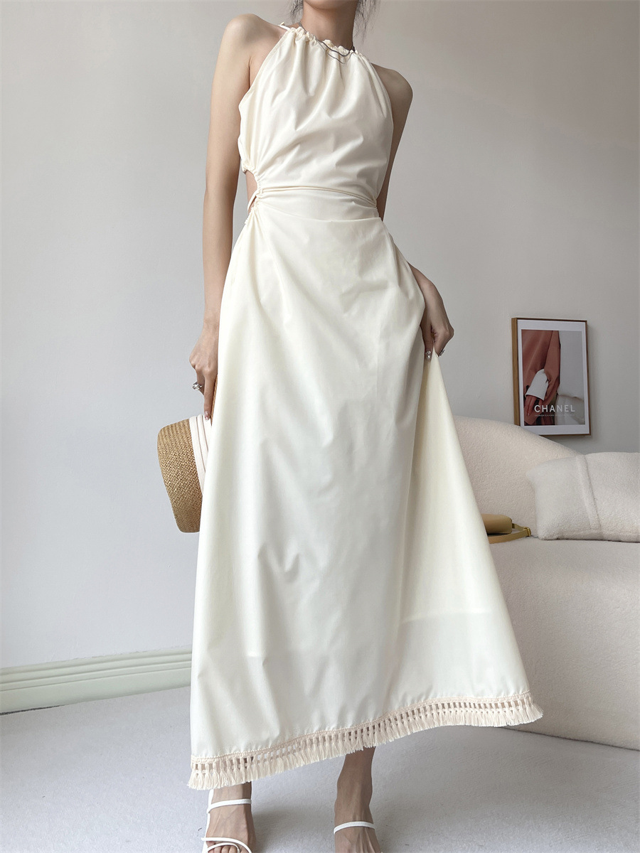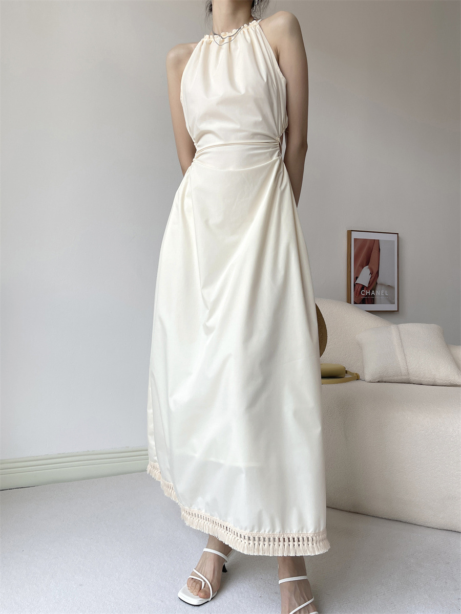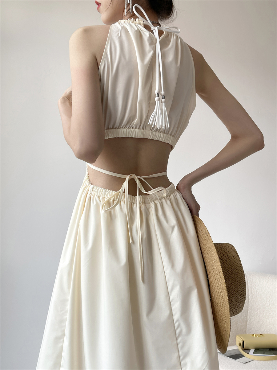 民族风收腰无袖挂脖连衣裙夏季露腰设计感长款裙子