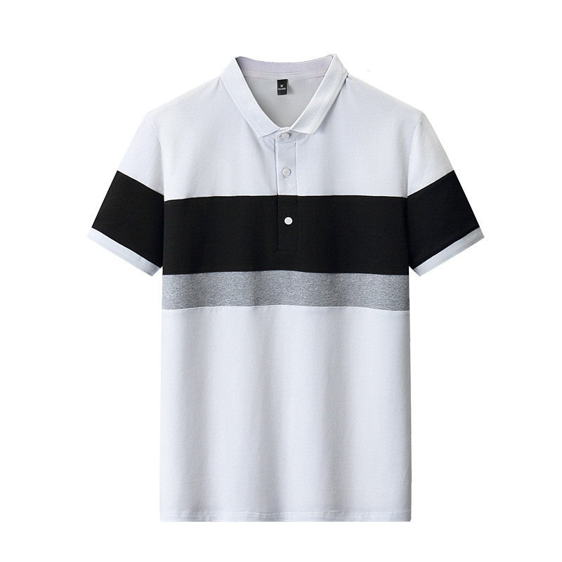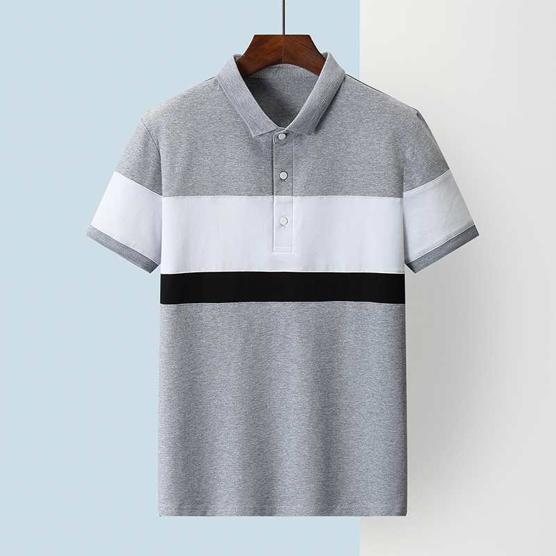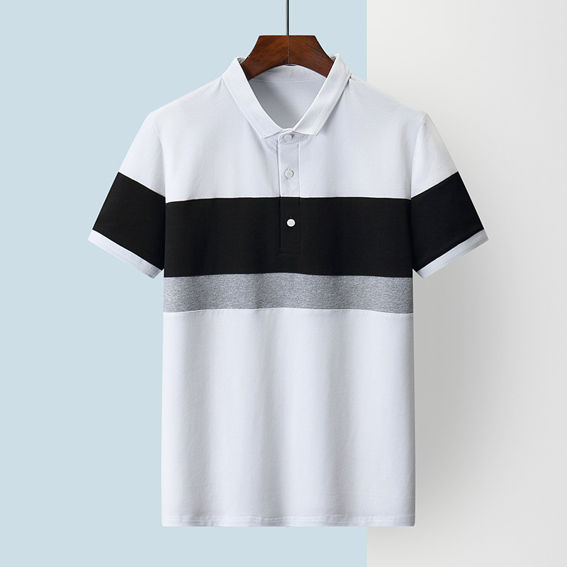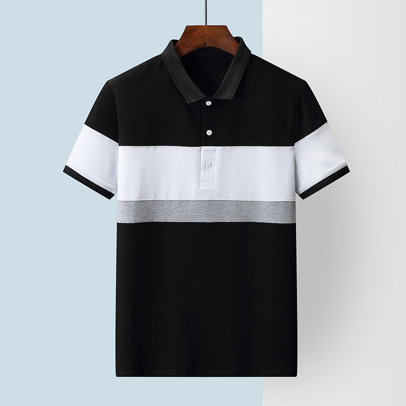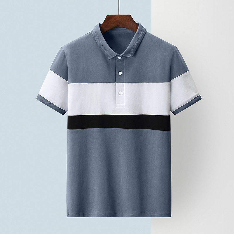 夏季青年男士短袖t恤休闲夏装拼色宽松条纹POLO衫翻领商务男装潮