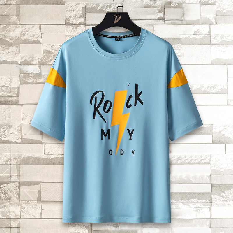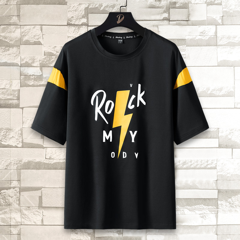 短袖T恤男潮牌夏季个性印花新款百搭圆领体恤衫男士薄款休闲上衣