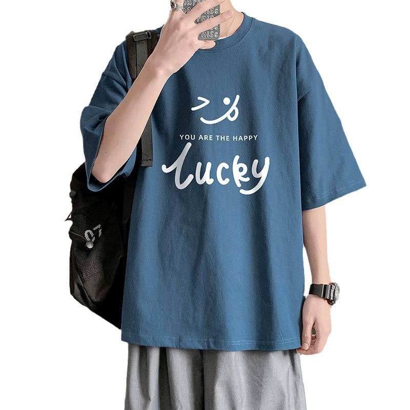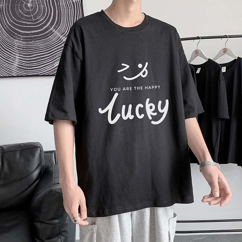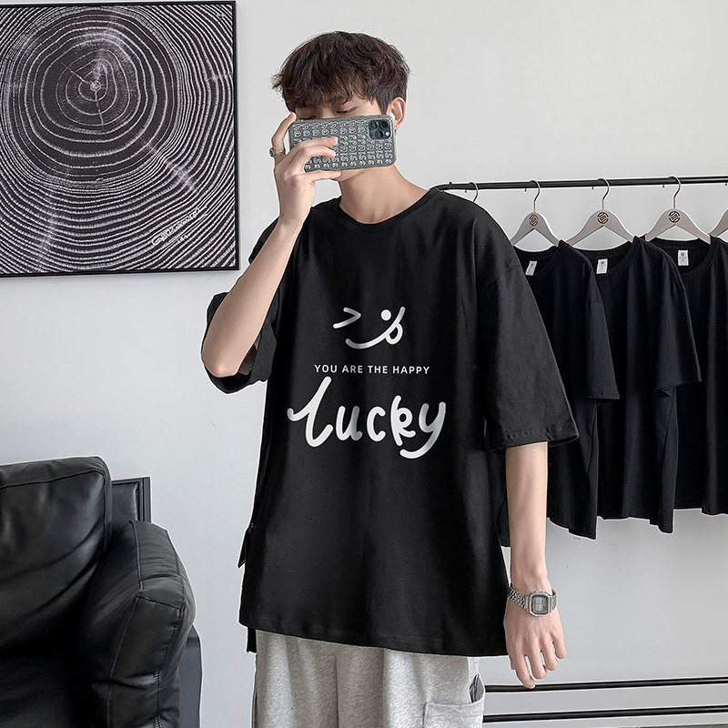 字母印花短袖t恤男生夏季新款港风潮流宽松大码青少年五分袖