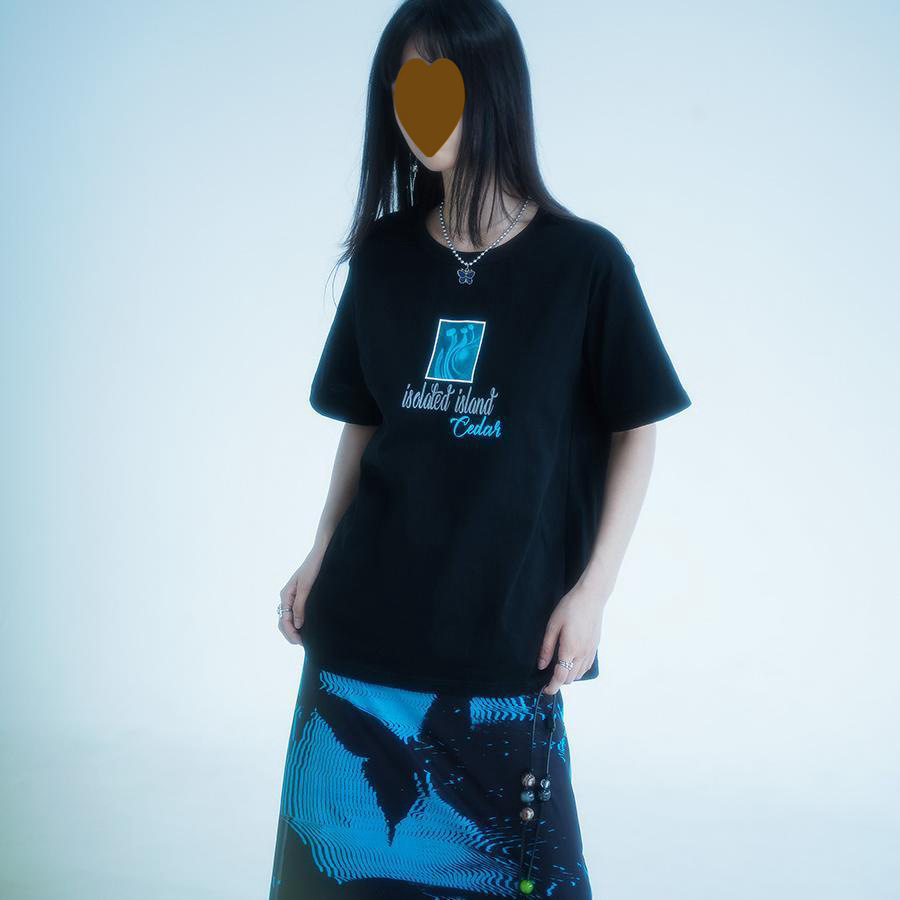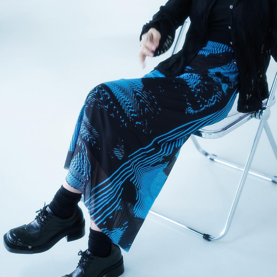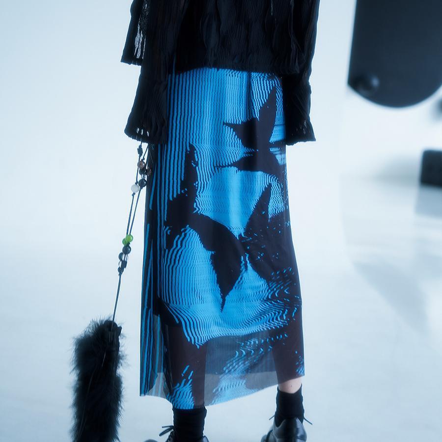 设计感少女「异端拟蝶」原创黑蓝色蝴蝶印花网纱新中式半身裙女夏