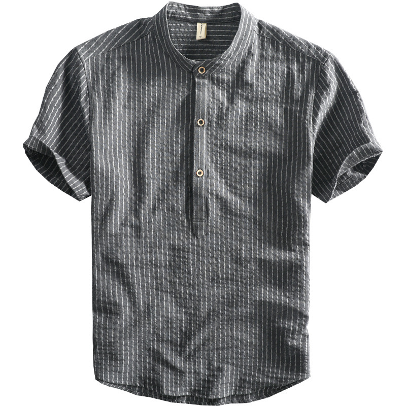 夏季男士短袖条纹衬衫休闲宽松大码男装衬衣