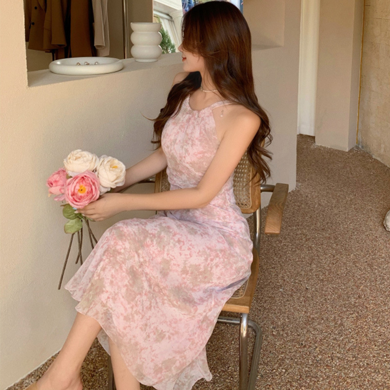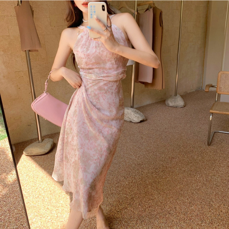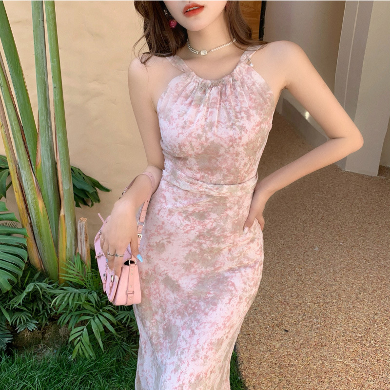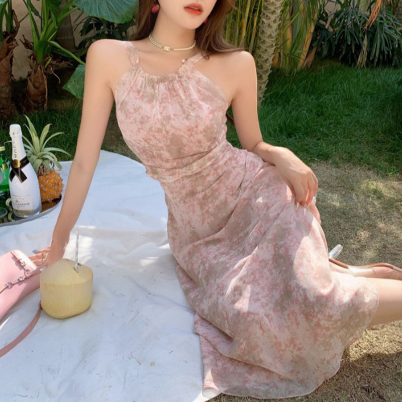温柔风吊带连衣裙女春夏新款设计感小众超仙女裙收腰显瘦长裙