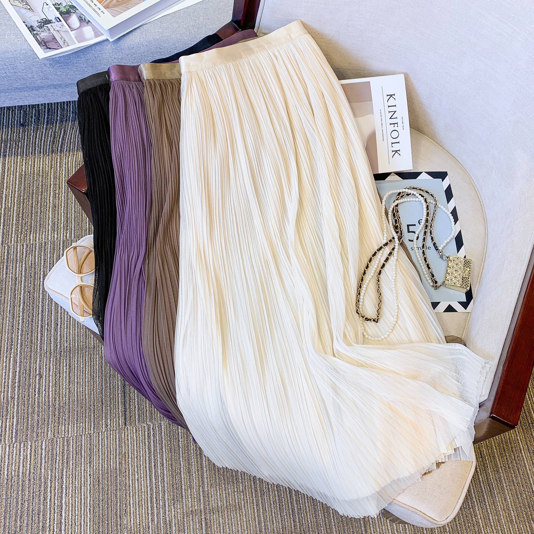 细褶网纱百褶裙春夏新款飘逸仙女大摆A字纱裙中长款半身裙女